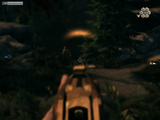 Condamné à partager la vedette, le bonhomme, qui avait dû laisser un peu de place au très discret Billy dans le premier volet, se voit ainsi aujourd’hui accompagné de ses frangins, Thomas et William. Ce dernier, cadet du clan McCall n’occupe néanmoins ici qu’un simple rôle de narrateur et de PNJ tête à claques. Thomas, lui, fait bien plus que de la figuration. La plupart des quinze missions vous laisseront la possibilité d’incarner soit ce séducteur maniant dextrement le fusil et jouant habilement du lasso, soit ce grand malade de Ray, amoureux du double six-coups et véritable machine à tuer. Rien ne prédestinait pourtant l’infernal binôme à un tel destin, les McCall ayant grandi dans une riche plantation de Géorgie. Mais la Guerre de Sécession est passée par là, modifiant considérablement la donne géo-économique régionale en même temps qu’elle changeait le cœur des hommes. Soldats valeureux d’une armée sudiste en déroute, les deux aînés désertent pour porter secours à leur vieille mère et au petit dernier, restés seuls dans la propriété familiale menacée par les troupes de l’Union. Traquée par les deux camps, le fratrie quitte le pays pour le Mexique, terre de soleil, de tequila et d’or, de montagnes d’or même si l’on en croit la légende de Juarez, qui veut qu’un formidable trésor inca soit enterré quelque part, à la portée des plus intrépides. De courage, voire d’inconscience, les deux aînés ne manquent pas. Sombrant peu à peu dans la facilité du quotidien de hors-la-loi, ils prennent les filles et les vies avec la même rage, laissant derrière eux une piste sanglante, que vous contribuerez à élargir. Plus sec que son prédécesseur, débarrassé des séquences d’infiltration, cet épisode en a dans le ventre. Pas d’artifice à deux cents, pas de stratégie de coyote, ici, seuls ceux qui dégainent plus vite que leur ombre et n’ont par peur de tirer là où ça fait mal peuvent s’imposer. Mettant en scène des personnages hideux, souvent autant moralement que physiquement, qui passent leur temps à s’invectiver en faisant usage d’un langage particulièrement fleuri, Call of Juarez : Bound in Blood multiplie les clichés en les assumant et, surtout, magnifie la violence de ces échanges en milieu aride.