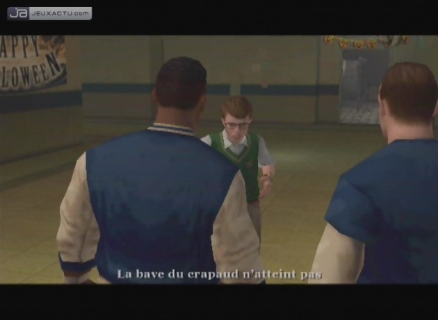 Parce qu’il est du genre à répondre et à jouer les rebelles en famille, Jimmy Hopkins, 15 ans, est envoyé par sa mère à la Bullworth Academy, un lycée réputé pour sa rigidité et spécialisé pour redresser les jeunes adolescents un brin perturbateurs. Mais l’attitude rebelle de Jimmy est aussi une excuse toute trouvée pour que sa mère puisse aller roucouler sous les cocotiers avec son nouvel amant, pas franchement apprécier par notre bad boy en culottes courtes. Pas facile aussi de s’attacher à un inconnu, surtout lorsqu’il s’agit de la cinquième conquête de sa mère. Le crâne rasé, l’oreille gauche percée, la chemise pas rentrée et l’air ironique, Jimmy entre davantage dans la catégorie des loubards que des enfants de bonne famille. Un sobriquet qui lui sied à merveille puisque ce dernier s’autoproclame en tant que tel et compte bien se faire valoir par ses propres méthodes. Aussi, il ne bronchera pas d’un cil lorsqu’il fera la rencontre avec le proviseur, un brin sadique qui compte bien faire de Jimmy un adolescent obéissant, peu importe les moyens employés. Une cinématique d’intro efficace, des personnages au caractère bien trempé, des dialogues percutants et croustillants, en l’espace de quelques minutes, Rockstar Games a réussi à imposer une ambiance, qui nous tiendra d’ailleurs en haleine jusqu’à la fin du jeu.