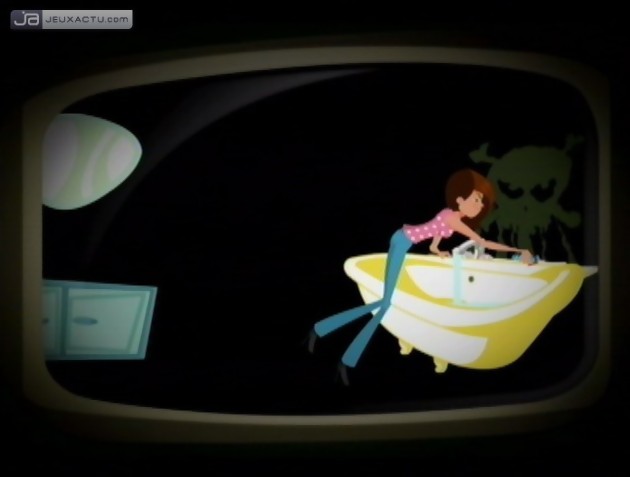 Ca tombe plutôt bien car le titre s’inscrit dans la lignée des jeux familiaux où seule l’utilisation de la Wiimote suffit à provoquer des fous-rires. En théorie seulement, car quand bien même Lexis Numérique s’est creusé la tête pour établir un véritable background avec la famille Stevens, les mini-jeux proposés sont loin d’être épatants. On se retrouve ainsi embringué dans les mésaventures de cette famille un peu loufoque, prise au piège par une machine autonome qui a décidé de foutre le dawa dans la maison. Une machine infernale qui fera même office de big boss à la toute fin du jeu, une fois que l’ensemble des épreuves aura été débloquée. En fait, la carence vient surtout du nombre d’épreuves, 17 au total, ce qui est bien trop faible pour tenter de faire jeu égal avec des pointures telles que Mario Party qui dispose de plus d’une cinquantaine de défis, ou dans une moindre mesure les Lapins Crétins qui peuvent compter sur leur bagout pour faire oublier leur piètre prestation. C’est d’autant plus regrettable car certaines épreuves de Chaos à la Maison ont le mérite d’être assez originaux, comme cette fuite d’eau grandeur nature qui nous oblige à sauver le maximum de meubles de la maison. Le saut à l’élastique où l’on nous demande de catapulter Alex vers le bureau de son père pour récupérer des tubes, ou bien encore Somnambules où l’objectif est d’empêcher les intrus de réveiller les membres de la famille. Toutes ces épreuves font preuve d’originalité et se révèlent également amusants à jouer. Malheureusement, l’euphorie sera de courte durée puisque le reste des mini-jeux manquent sévèrement d’inventivité. Entre les fissures à réparer et les personnages à cibler pour les ensuite les déplacer, on a quasiment fait le tour de la question. Forcément, en n’utilisant uniquement la Wiimote, les mouvements à réaliser devant son téléviseur sont minimes et l’on se retrouve à faire les mêmes gestes tout au long de l’aventure. Qu’importe, celle-ci se montre plutôt brève et il ne vous faudra pas plus de deux heures pour arriver en face du boss et terminer le jeu. Evidemment, tout l’intérêt de Chaos à la Maison réside dans sa replay-value et dans les parties à plusieurs, mais là encore, il faut être sacrément téméraire pour se contenter de si peu de choses.