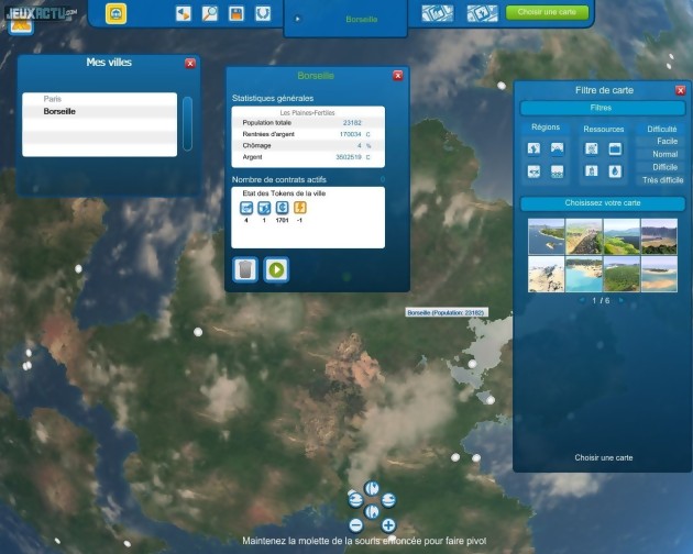 Le cœur du jeu reste tout de même la création de sa propre ville de A à Z. Pour cela, on dispose dorénavant de la possibilité d'installer des rond-points prédéfinis, alors qu'il fallait auparavant les bricoler soi-même. Plus important, les parties sont désormais dotées d'une fonction d'accélération permettant de faire défiler le temps jusqu'à cinq fois plus rapidement que la normale. C'est bien pratique lorsqu'on délimite un grand quartier de maisons ou de bureaux, et qu'il met du temps à se remplir. Quand à la gestion de la fiscalité, elle se voit nettement affinée puisqu'on peut enfin assigner différents taux d'imposition à chaque catégorie de travailleurs ou type d'entreprises. On note également l'apparition de trophées qui, tels des succès Steam, récompensent virtuellement le joueur pour ses bonnes actions, et même ses mauvaises parfois. Un message tonitruant viendra ainsi vous récompenser lorsque vous aurez satisfait 10000 travailleurs qualifiés... tandis qu'un autre saluera le fait d'avoir un budget négatif de -5000 crédits. C'est assez gadget, mais on sait que certains joueurs adorent ce genre de fioritures. Enfin, et surtout, le jeu accueille pour de bon les fameux transports en commun, totalement absents du mode solo de Cities XL et implantés tardivement et partiellement dans l'offre en ligne. On peut dorénavant tracer des lignes de bus ou de métro comme on le souhaite. Il y a certaines limitations (40 arrêts maximum par ligne de bus, 20 stations pour les lignes de métro, impossibilité de créer une station aérienne même s'il reste possible d'avoir un tronçon de ligne hors-sol) mais l'ensemble s'avère plutôt complet et fonctionnel. Et devient même rapidement indispensable pour ne pas surcharger les axes routiers, facilement encombrés dès qu'on atteint un nombre important d'habitants. Plus étonnant encore, les développeurs ont su adapter correctement les fonctionnalités phares de feu l'offre Planète, initialement pensées uniquement pour être jouées en ligne. On retrouve donc une belle planète représentée façon Google Earth à la différence que, cette fois, toutes les villes n'appartiennent qu'à vous. Mais l'interface d'échange de ressources ne passe pas à la trappe pour autant ! Simplement, au lieu de commercer avec d'autres joueurs, vous le ferez avec vos différentes cités ou avec Omnicorp, une société dirigée par l'IA et très rude en affaires. Le principe de spécialiser certaines villes dans certains domaines (agro-alimentaire, eau, managers, vacances, électricité...) afin d'atteindre un équilibre global plutôt que local reste donc d'actualité. Et la durée de vie du jeu s'en trouve décuplée puisqu'on aura tout intérêt à bâtir un maximum de villes afin d'optimiser au mieux les échanges. Terminons par quelques mots sur le bilan technique, assez proche du précédent épisode. On apprécie toujours autant la puissance du zoom, qui permet de passer sans à-coups d'une vue stratosphérique à une vue au ras du sol... quitte à déplorer alors le design cartoon assez inélégant des passants. Et on regrette la gourmandise du jeu, qui rame dès que les villes atteignent une taille importante, ainsi que les problèmes récurrents pour établir certaines routes et zones (on ne comprend pas toujours pourquoi le logiciel nous refuse certains tracés).