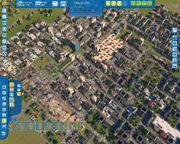 Le cœur du jeu reste tout de même la création de sa propre ville de A à Z. Pour cela, on dispose dorénavant de la possibilité d'installer des rond-points prédéfinis, alors qu'il fallait auparavant les bricoler soi-même. Plus important, les parties sont désormais dotées d'une fonction d'accélération permettant de faire défiler le temps jusqu'à cinq fois plus rapidement que la normale. C'est bien pratique lorsqu'on délimite un grand quartier de maisons ou de bureaux, et qu'il met du temps à se remplir. Quand à la gestion de la fiscalité, elle se voit nettement affinée puisqu'on peut enfin assigner différents taux d'imposition à chaque catégorie de travailleurs ou type d'entreprises. On note également l'apparition de trophées qui, tels des succès Steam, récompensent virtuellement le joueur pour ses bonnes actions, et même ses mauvaises parfois. Un message tonitruant viendra ainsi vous récompenser lorsque vous aurez satisfait 10000 travailleurs qualifiés... tandis qu'un autre saluera le fait d'avoir un budget négatif de -5000 crédits. C'est assez gadget, mais on sait que certains joueurs adorent ce genre de fioritures. Enfin, et surtout, le jeu accueille pour de bon les fameux transports en commun, totalement absents du mode solo de Cities XL et implantés tardivement et partiellement dans l'offre en ligne. On peut dorénavant tracer des lignes de bus ou de métro comme on le souhaite. Il y a certaines limitations (40 arrêts maximum par ligne de bus, 20 stations pour les lignes de métro, impossibilité de créer une station aérienne même s'il reste possible d'avoir un tronçon de ligne hors-sol) mais l'ensemble s'avère plutôt complet et fonctionnel. Et devient même rapidement indispensable pour ne pas surcharger les axes routiers, facilement encombrés dès qu'on atteint un nombre important d'habitants. Plus étonnant encore, les développeurs ont su adapter correctement les fonctionnalités phares de feu l'offre Planète, initialement pensées uniquement pour être jouées en ligne. On retrouve donc une belle planète représentée façon Google Earth à la différence que, cette fois, toutes les villes n'appartiennent qu'à vous. Mais l'interface d'échange de ressources ne passe pas à la trappe pour autant ! Simplement, au lieu de commercer avec d'autres joueurs, vous le ferez avec vos différentes cités ou avec Omnicorp, une société dirigée par l'IA et très rude en affaires. Le principe de spécialiser certaines villes dans certains domaines (agro-alimentaire, eau, managers, vacances, électricité...) afin d'atteindre un équilibre global plutôt que local reste donc d'actualité. Et la durée de vie du jeu s'en trouve décuplée puisqu'on aura tout intérêt à bâtir un maximum de villes afin d'optimiser au mieux les échanges. Terminons par quelques mots sur le bilan technique, assez proche du précédent épisode. On apprécie toujours autant la puissance du zoom, qui permet de passer sans à-coups d'une vue stratosphérique à une vue au ras du sol... quitte à déplorer alors le design cartoon assez inélégant des passants. Et on regrette la gourmandise du jeu, qui rame dès que les villes atteignent une taille importante, ainsi que les problèmes récurrents pour établir certaines routes et zones (on ne comprend pas toujours pourquoi le logiciel nous refuse certains tracés).