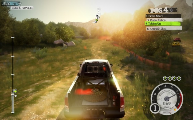 Pour espérer cumuler les points d'expérience à la vitesse de la lumière, franchir la ligne d'arrivée en tête s'avère être le moyen le plus efficace, même si une huitième place permet de gratter un peu si on est sur le point d'accéder au level suivant. Généralement, les points d'expérience remis à la fin de chaque course sont accompagnés de quelques goodies dont on pourra se servir pour personnaliser sa caisse. Puisque l'on en parle, les fans de tuning n'auront pas l'occasion de passer des heures à customiser leurs véhicules, les possibilités à ce niveau-là étant clairement réduites. On ne pourra toucher qu'à la peinture, au klaxon - vachement intéressant -, aux babioles du tableau de bord - encore mieux - et au pare-brise. Les points d'expérience, on peut également en récupérer en accomplissant des missions. Les récompenses sont plus ou moins généreuses, allant de 2 500 (Grand Voyageur) à 500 points (Flashback), en passant par 1 000 points (Paysagiste). Parcourir un certain nombre de kilomètres, utiliser au moins une dizaine de Flashback, détruire plus de 1 000 éléments du décor, réaliser le plus grand nombre de tonneaux, voilà un exemple des défis à relever contenu dans Colin McRae : DiRT 2. Là encore on retrouve cette volonté de varier les plaisirs, tout en ne s'éloignant pas des objectifs initiaux : parfaire sa conduite et sa réputation. Pour en revenir aux épreuves, il en existe plusieurs types, ce qui renforce considérablement la richesse du contenu du jeu. En "Gate Crasher", il faudra pulvériser le plus de portes possible pour gagner quelques secondes et présenter le meilleur à la fin du parcours, alors qu'en "Rallye" il s'agira de se rendre d'un point A à un point B en suivant les indications du co-pilote. Du grand classique également pour "Eliminator" où l'on devra être le dernier à rester en piste, le dernier pilote du classement se faisant éliminer tour après tour. Enfin, "Domination" n'est pas mal non plus dans son genre puisqu'il faudra réaliser le meilleur temps sur chaque secteur du circuit ; le pilote déclaré vainqueur étant celui ayant dominé le plus grand nombre de secteurs.