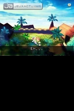 Contact est au RPG ce que Killer7 est au jeu d’action. Particulièrement dans le sens où il est en complet décalage avec ses contemporains. A ce titre, on peut vous annoncer d’emblée qu’il ne conviendra pas à tout le monde. En effet, Contact impose un rythme particulier par un triolisme étonnant : le professeur, siégeant dans l’écran supérieur et qui vous donnera mille et un conseils pour l’accomplissement de votre mission ; le héro, véritable acteur de l’aventure et le joueur proprement dit. Ainsi, le professeur tentera d’instaurer un dialogue privilégié avec le joueur par l’intermédiaire de la DS. Malheureusement, la glace se brise trop difficilement pour faire des étincelles mais on salue tout de même cette initiative. Traqué par une mystérieuse organisation extraterrestre nommée Mutestant, le professeur se crashe sur notre planète où il fait la rencontre d’un jeune garçon muet, Terry. Très rapidement, il le charge de récupérer les 6 éléments disséminés un peu partout dans le monde. Convoités par Mutestant pour permettre l’élaboration d’une arme de destruction massive, ces éléments permettront au professeur de réparer son vaisseau spatial. Transformé en galion pour l’occasion, ce dernier vous offrira la possibilité de voyager d’île en île (huit en tout) pour parfaire votre mission. Une aventure malheureusement limitée par le temps puisqu’on peut compter un peu plus d’une dizaine d’heures à peine pour boucler le jeu. Le système de progression est très classique et se limite à : « village-donjon-boss, on recommence et c’est gagné ». De nombreuses quêtes annexes sont pourtant de la partie mais elles apportent trop peu pour que l’on daigne y prêter attention. Derrière tout cela, le jeu se pose avec une remarquable simplicité et un naturel déconcertant. Si Terry doit en quelque sorte sauver le monde, on est très loin de ce côté grave et profond, voire pesant des autres jeux de rôles. C’est bien simple, Contact ne se prend pas du tout au sérieux. Bourré d’humour et de situations insolites en tous genres (il faut par exemple prendre un bain chaud pour remonter ses points de vie), le jeu fait également la part belle à de nombreuses références vidéoludiques. Le professeur peste contre les mises à jour de son ordinateur forçant son redémarrage, que l’on devine provenir de Windows Update. Clins d’œil également à Pikmin, Donjons & Dragons, Pong, Ghosts and Goblins, Oblivion, etc. Mieux vaut donc posséder une certaine culture et faire partie de la catégorie des geeks pour en profiter au maximum. Tout cela lui confère un cachet et un charme certain et finit malgré tout à scotcher les doigts du joueur à sa console.