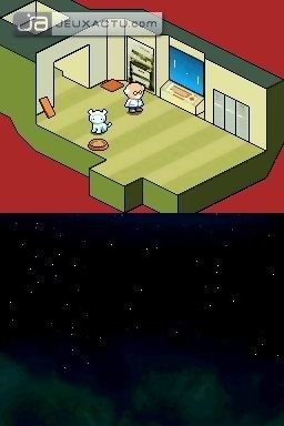 Contact est assurément un jeu mignon et bien coloré. La patte graphique est d’autant appréciable on retrouve le même esprit de décalage : si l’écran inférieur met en avant le souci du détail, l’écran supérieur représentant la salle du professeur est volontairement épuré. Il laissera parfois sa place pour que l’écran supérieur soit un prolongement direct de l’écran inférieur ou pour visualiser un autre endroit de la carte (une herse s’abaissant ou un personnage en détresse). Si l’écran supérieur est bien utilisé, on ne peut pas en dire autant du stylet. Indispensable pour naviguer entre les menus, son imprécision concernant les déplacements font qu’on lui préférera vite le bon vieux pad directionnel.