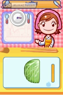 Une simulation de cuisine ? Le concept ou plutôt la recette ne date pas d’hier, du moins au Japon où le genre s’est taillé une belle réputation auprès de la nouvelle génération de joueurs mais surtout de joueuses, cible première de ces jeux au concept bien décalé. Dans Cooking Mama, le joueur endosse donc le tablier d’un jeune apprenti cuisinier qui va apprendre en quelques coups de cuillère à pot à préparer des recettes classiques de la gastronomie japonaise. Soupe Miso, gyozas grillés, curry de porc, Takoyaki, riz aux pousses de bambou, Tonjiru, des plats exotiques auxquels se mêlent des recettes venues de l’Occident tels que le poulet rôti, le steak frites, la pizza, la côtelette de porc ou bien encore les spaghettis à la Napolitaine. Ce n’est pas moins de 120 recettes qui nous attendent au total dans Cooking Mama, des préparations culinaires que l’on découvre au fur et à mesure que l’on réussit les diverses préparations dans le mode "Cuisine". Il va donc falloir se montrer à la hauteur pour pouvoir débloquer l’ensemble des 120 recettes et gagner ses galons de Maïté ou de Cyril Lignac en herbe, c’est vous qui choisissez.