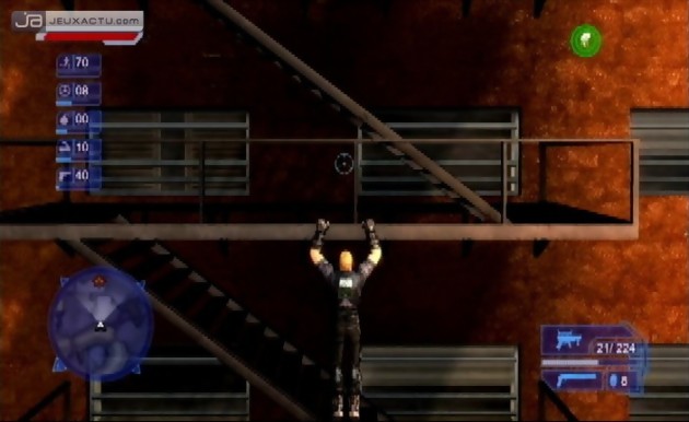 Plus vous vous enfoncez dans les ruelles de Pacific City, plus vous faites de découvertes et dès lors que votre ATH vous indique un point de sauvegarde, vos supérieurs se sentent obligé d’en rajouter une couche en expliquant qu’un "checkpoint se trouve à proximité". Vu leur grand nombre, cette petite phrase aussi anodine soit-elle devient vite rébarbative. Il en va de même pour les autres marques que vous apercevrez. Crackdown propose en plus des checkpoints, des courses en bagnoles et des courses de toits, c’est-à-dire des courses à pied qui nécessite un bon sens de l’orientation et une bonne dose de voltige. Mais on y reviendra plus tard. La principale attraction de l’Agence est d’éliminer les patrons de chaque gang. Encore une fois, c’est en vous baladant dans la ville que vous repèrerez leur planques. Si vous vous sentez d’humeur bagarreuse, vous pouvez aller vous fritter aux ennemis tout en écoutant les recommandations de votre chef de section. Ce dernier vous explique la particularité de tel ou tel gangster. Chacun a droit à sa compétence dans un gang telle que l’approvisionnement en armes ou la livraison de voitures, mais leur défaite n’entraîne aucune pénalité au gang attaqué. Dommage ! Donc lorsque vous vous approchez de son repère, vous avez connaissance de votre potentiel de victoire. Il va sans dire que plus vous éliminer de rebelles, plus vos chances de succès sont grandes. Après avoir fait le ménage avec les petits parasites assurant la protection d’un boss, l’affrontement tant attendu ne présente que peu de difficulté selon l’arsenal que vous possédez. Dans Crackdown, vous pouvez seulement emporter 2 armes et 1 type de grenades avec vous. Si par malheur vous tombez à court de munitions, pas de panique, il vous suffit de vous servir sur les cadavres des ennemis. Pistolets, fusils à pompe, fusils d’assaut, snipers, lance-grenades, lance-roquettes, le choix des armes est important notamment grâce à de nombreuses déclinaisons plus ou moins efficaces. On privilégiera les armes de destruction de massives telles que les roquettes pour faire le ménage sans trop s’inquiéter.
