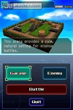 Custom Robo Arena se déroule en deux phases. La phase aventure, en vue aérienne, est chargée de faire avancer le scénario et se déroule à la manière d’un RPG classique. Ultra scriptée, il faudra en général se rendre à un endroit donné pour déclencher des cut-scenes. Alimentées par une 2D complètement vieillotte et dépassée, ces cinématiques ne constituent bien évidemment qu’un simple prétexte à la deuxième phase, celle des combats de "Robo". Principal aspect du jeu, c’est entièrement en 3D, plutôt correcte en vue du support, que cela se passe. Vous serez alors transportés dans des arènes fermées à partir desquelles il faudra ressortir vainqueur. Pour ce faire, vous disposez bien évidemment de multiples armes à feu : guns, bombes, armures etc. aux capacités bien différentes. Et c’est d’ailleurs-là que le titre prend son ampleur et nous offre un peu plus de consistance. Votre "Robo" dispose de cinq paramètres que vous pouvez customiser, pour de multiples éléments à disposer. Autant dire que des milliers de combinaisons s’offrent à nous. Malgré tout, c’est encore loin d’être suffisant, puisque la facilité et le côté bourrin des affrontements affichent clairement les limites du gameplay. Ajoutez à cela une aventure complètement éclipsée par la recherche de pièces et d’armes plus rares, et vous obtiendrez un jeu tout juste moyen. Heureusement, comme bien souvent dans ce type de jeu, c’est en multi que l’on passera le plus clair de son temps, notre acharnement dans le mode solo trouvant enfin une raison d’être. Le jeu supporte de plus l’option Nintendo Wi-Fi Connection, ce qui vous permettra de vous frotter à d’autres joueurs venus de tout horizon. Et puisqu’on est sur DS, on notera pour l’anecdote que le stylet et l’écran tactile servent uniquement à astiquer votre "Robo", afin que la crasse et la saleté n’altèrent en rien vos capacités.