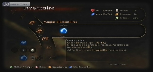 C’est vrai qu’un premier coup d’œil, le jeu d’Ubisoft ressemble à s’y méprendre à Oblivion : une jauge de mana, des points de santé, des sorts magiques, une barre d’expérience et de beaux chevaliers prêts à en découdre avec vous ; aucun doute possible, visuellement Dark Messiah of Might and Magic : Elements nous plonge dans les clichés du RPG à la sauce heroic-fantasy. Il en va de même pour les décors souvent travaillés. Du village atypique de Heaumroc et ses chaumières accueillantes, aux grottes suantes et abritant diverses créatures tourmentées aux temples majestueux, en passant par quelques geôles et une île sauvage ; même le système de jeu s’y prête avec un Sareth évolutif qui glane son expérience au fil des combats et des quêtes menées à bien. Mais dès le premier gain de niveau et après avoir sélectionné votre classe, on se rend vite compte de la supercherie. Il est en effet impossible de personnaliser ses compétences. A la différence de la version PC, tout se fait automatiquement et par conséquent, on n’est dans l’incapacité de faire progresser les points faibles de son avatar. Auparavant, vous pouviez rajouter quelques points au combat, à la magie ou aux compétences annexes afin de créer un personnage hybride, sans rester dans les carcans imposés par votre classe. On se contentera alors des restes pour simuler un quelconque RPG, c’est-à-dire un arsenal qui s’améliorera au fil des heures, de nouveaux sorts à débloquer et d’un équipement secondaire toujours utile pour perfectionner certaines compétences. Pour profiter des prouesses physiques des autres classes, vous n’aurez d’autre choix que de recommencer le jeu en sélectionnant l’un des quatre rangs proposés (guerrier, archer, mage assassin) qui ont chacun leurs points forts et leurs points faibles. C’est sûr de ce point de vue là, Dark Messiah of Might and Magic : Elements propose une replay-value intéressante, mais un tantinet trafiquée.