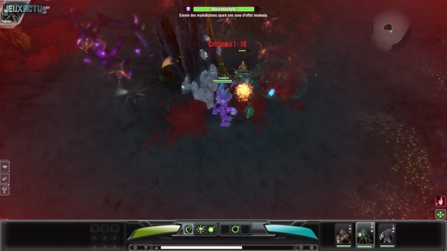 Le genre action-RPG, également appelé hack 'n' slash en raison de sa tendance à nous faire décimer du monstre à la chaîne, possède quelques très beaux représentants. L'incontournable Diablo bien sûr, mais également le récent Torchlight. C'est à ce dernier que Darkspore fait penser dans un premier temps, en raison de graphismes très cartoon. Il faut dire que le jeu reprend à son compte les créatures aussi monstrueuses que mignonnes du surestimé Spore. Il y en a une centaine à débloquer (en vérité 25 types de base, chacun d'entre eux étant décliné en quatre variations) et à personnaliser. Sur ce point précis, Darkspore commence déjà à souffler le chaud et le froid. Si l'on apprécie de pouvoir ramasser un grand nombre d'améliorations génétiques sur les champs de bataille, et de pouvoir les placer un peu comme bon nous semble sur nos héros, on regrette que l'éditeur de créatures de Spore ait été autant bridé. Il est en effet impossible de partir de zéro et de créer sa propre bestiole. On peut toujours se consoler en se disant qu'avec des créatures générées à l'avance, le jeu se montre très accessible. Peut-être même un peu trop puisque les premiers niveaux ne proposent absolument aucun challenge. Avancer et cliquer sur les monstres pour déclencher l'attaque de base suffit généralement à sortir vainqueur. Il faut attendre que les premières hordes de monstres débarquent pour utiliser les pouvoirs spéciaux (réunis dans une classique barre de "sorts" horizontale), et seuls les premiers boss nous demanderont de jongler entre nos différentes créatures. En effet, chaque niveau se parcoure avec une escouade de trois créatures à sélectionner parmi celles que l'on a déjà débloquées. On n'en contrôle qu'une à la fois, mais on peut zapper à tout moment de l'une à l'autre. L'intérêt ? Bénéficier de talents variés et pouvoir changer de combattant lorsqu'un adversaire de même type se présente face à lui. Car les créatures sont réparties en cinq types (Bio, Cyber, Necro, Plasma, Quantum) et un ennemi inflige systématiquement et automatiquement deux fois plus de dégâts à une créature du même type que lui. Un paramètre qu'on peut négliger dans les premiers niveaux, mais qu'il faut impérativement prendre en compte plus tard.