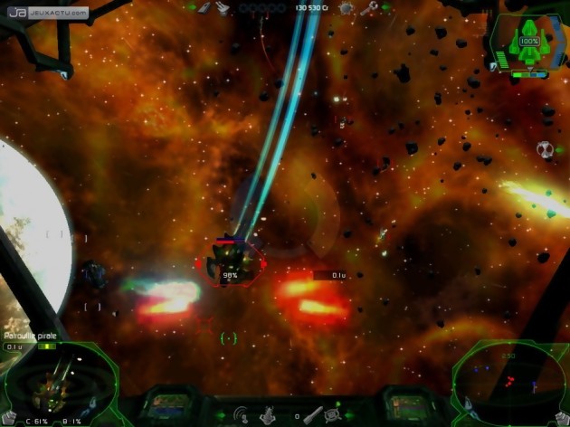 Comme d’habitude, la zone du début vous permet de vous confronter à des adversaires de pacotille. L’élimination d’un pirate vous rapporte par exemple 200 crédits. Plus vous avancez dans l’aventure, plus cela rapporte d’argent. A la moitié de l’aventure par exemple, les primes avoisinent les 3000 crédits (ce n’est pas sans raison, le matériel coûte lui aussi extrêmement cher). Mais si vous revenez dans une constellation du début, les bénéfices tirés de chaque élimination pirate restent les mêmes. Bref, il n’existe aucune situation de blocage lié à l’argent, ce qui est réellement appréciable. D’autres apparaissent, malheureusement et elles sont liées à des bugs. A plusieurs reprises, nous avons pu relever des missions tellement scriptées que s’éloigner d’un centimètre de celle-ci provoquait dans le meilleur des cas un "Game Over", dans le pire, une situation de blocage. Dans ce cas, il ne reste plus qu’à reprendre la sauvegarde automatique en priant pour que celle-ci n’ait pas eu lieu après le blocage en question. D’une manière générale, il convient de sauvegarder très régulièrement.
