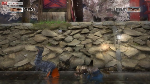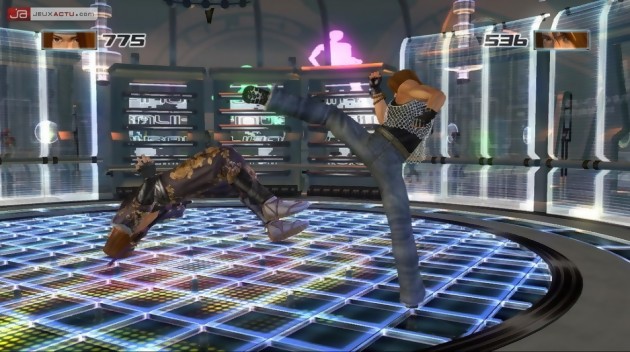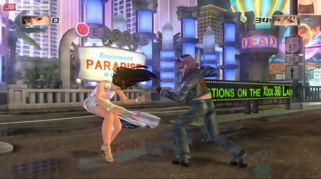 Considéré pour beaucoup comme une astuce de gamins, le système des contres dans Dead or Alive 4 poursuit le mouvement lancé par Dead or Alive Ultimate en limitant le côté aléatoire sinon trop facile de cet élément clef de la série. Le timing a été resserré afin de limiter les abus mais aussi empêcher le premier newbie venu de contrer toutes nos attaques. Les contres exigent donc une plus grande rigueur et de meilleurs réflexes pour espérer casser un enchaînement par exemple. Nul besoin de céder à la panique, l’exécution des contres se fait de la même manière qu’auparavant mais le rythme des combats désormais accéléré risque de déstabiliser les joueurs défensifs dans un premier temps. Pour dynamiser les matchs, Tomonobu Itagaki a également réduit considérablement les dimensions des arènes, ce qui empêchera les fuyards de prendre la poudre d’escampette histoire de souffler un peu après s’être mangé deux trois séries d’enchaînements au corps. Le jeu gagne ainsi en technicité et les pros des sticks arcade peuvent désormais s’en donner à cœur joie. Les effets de flou, longuement illustrés grâce aux palettes de screenshots diffusés sur le Net, accentuent de manière considérable l’impression de fluidité et de l’animation. A ce propos, Dead or Alive 4 tourne à 60 fps par seconde et pas un seul instant, la Xbox 360 ne vacille d’un cil. Un bel exploit qui mérite d’être applaudi par toute une salle en délire. Il est regrettable en revanche que certains enchaînements s’éternisent sur la durée et que la moindre chute – celle qui nous fait passer d’un tableau à un autre - nous bouffe autant d’énergie. Quoi de plus frustrant également que de voir son personnage être balayé par un vélocitéraptor ou une voiture pendant un enchaînement ou tout simplement lorsqu’il ne reste plus grand chose de la barre de santé. Certains trouveront l’interactivité de ces décors originales et bienvenues tandis que d’autres comme nous jugeront cet aspect facultatif car mal exploité et donc gênant à long terme.