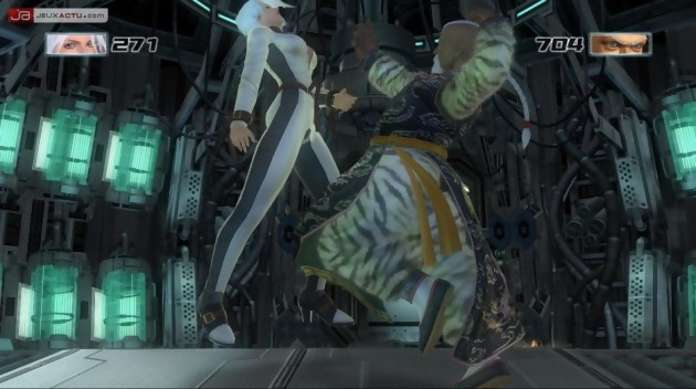 Sans nous plus crier au génie, la palette de coups de la plupart des personnages a suffisamment évolué pour aller jeter un oeil dans la section "Entraînement". Il est vrai que les 150 mouvements que dispose chacun des combattants peuvent perturber certaines habitudes, notamment au niveau des enchaînements. A l’instar de Dead or Alive 3, pas moins de 16 personnages sont jouables d’entrée de jeu, parmi lesquels trois d’entre eux sont de nouveaux challengers. Elliot qui pratique le Xing Yi Quan est l’unique disciple de Gen-Fu - l’un des 6 personnages cachés – et allie force du lion et rapidité d’un singe. On découvre également pour la première fois Kokoro, jeune apprentie geisha, bien décidé à participer au tournoi et prouver à sa mère que sa technique du Ba Ji Quan mérite, elle aussi, de figurer parmi les arts martiaux les plus respectés. Quant à La Mariposa, on aura reconnu sous ce nom grotesque et son masque qu’il s’agit de la belle Lisa, qui pratique la Lucha libre, sport de combat à mi-chemin entre catch et capoeira. La présence également de Spartan 458 n’était donc pas un leurre et ce clin d’œil dirigé directement envers Microsoft sera accessible uniquement après avoir terminé le mode "Story" avec Helena, l’un des protagonistes les plus longs à obtenir puisque disponible seulement après avoir terminé le jeu avec l’ensemble des personnages. C’est d’ailleurs l’un des éléments intéressants du jeu pour tous ceux qui aiment les cinématiques bien faites sinon potaches. On passe légitimement de scènes de fin amusantes et caricaturales à des séquences d’une niaiserie totale, à faire passer les séries d’AB Productions pour des grands moments de télévision. C’est dire le niveau.
