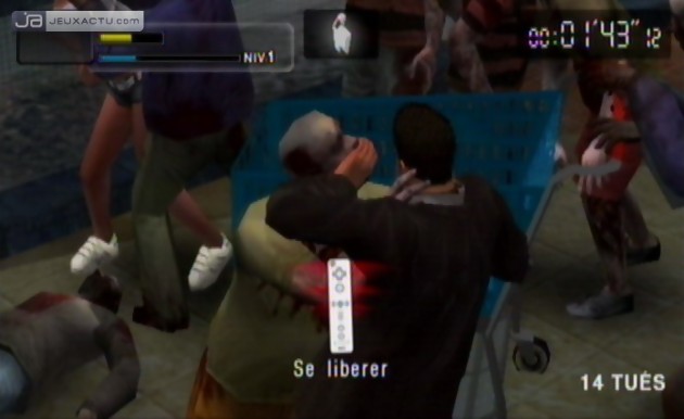 Pour ce qui est de la prise en main, elle se montre mi-figue mi-raisin. Assez laborieuse les premières minutes, c’est l’une des parties les plus délicates de cette jouabilité Wii qui se veut plus immersive dans le propos, mais moins instinctive dans les faits. S’il suffit d’appuyer sur la touche A ou d’agiter la télécommande pour donner des coups avec une arme blanche, il va falloir être précis quand on dégaine une arme à feu puisqu’il faut correctement viser un zombie avec la Wiimote. La reconnaissance n’est pas des plus pointilleuses, ce qui a tendance à énerver plus d’un joueur lorsqu’il se retrouve en face d’un parterre de zombies déjà aux aguets. C’est peut-être le seul moment où l’on a tendance à paniquer, faute de sang-froid.