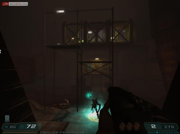 Dès l’introduction, le ton est donné : on repart direction Mars dans les habitations abandonnées de l’UAC. Cette dernière n’a pas toléré son échec quelques mois plus tôt et décide d’aller à nouveau écumer les ruines aliens sur place. Evidemment le héros de l’aventure fait partie du lot et en touchant à ce qu’il ne faut pas (un ancien artefact), des hordes de monstres surgissent à travers un portail nouvellement ouvert et commencent à bouffer tout le monde… Bon, question originalité du scénario, on repassera, c’est aussi compliqué et élaboré qu’un film de Dolf Lungren, bref, on s’en fout. Sous couvert d’une histoire à deux dollars martien, il est surtout question ici de nous replonger dans le noir comme l’avait fait Doom III et de nous envoyer des hordes de monstres nous grignoter les pieds. Rebelote la belote, le complexe martien s’étale devant nous et il faudra en atteindre la sortie. Seul ? Oui ou presque : vous, vos flingues et l’artefact alien. Question arsenal, outre les mêmes armes que dans le jeu original, la nouveauté se situe avec le retour du fusil de chasse à double canon coupé ! Pas original mais diablement jouissif, il défonce le crâne de la plupart des monstres d’un coup bien placé de double chevrotine. De l’efficace, quoi…
