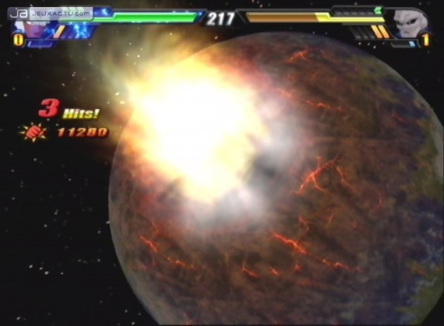 Au-delà d’un simple upgrade en terme de distribution, Dragon Ball Z : Budokai Tenkaichi 3 se charge aussi d’apporter bon nombre d’améliorations en ce qui concerne son gameplay. Bien entendu, la base est restée identique et le jeu propose une fois de plus la fameuse vue de dos, qui non seulement dynamise l’action de manière cinématographique, mais retranscrit également de la plus belle manière l’intensité qui se dégageait de la série animée et même du manga d’Akira Toriyama. Tout y est léché jusqu’au moindre détail, prouvant que Spike développe la série avec autant d’amour et fidélité. A première vue et surtout pour le joueur lambda, les différences qui existent entre Dragon Ball Z : Budokai Tenkaichi 2 et sa suite paraissent minimes voire même inexistantes. Ce sont en effet les habitués de la série qui remarqueront aisément que Dragon Ball Z : Budokai Tenkaichi 3 poursuit sans relâche le travail de fond qui avait été effectué dans l’opus précédent. C’est tout le système de combos et de téléportation qui a été revu et corrigé dans cette version, offrant à l’attaquant encore plus de possibilités d’attaque, tout en maintenant un certain pressing sur sa victime. Le vol du dragon, jusqu’à présent limité à une seule et unique direction s’offre ici de plus larges horizons. Dorénavant, il est possible de foncer sur son adversaire de différents côtés mais également d’éviter ou tout simplement de contourner une attaque, tout en gardant sa vitesse de croisière. Mieux encore, en combinant certaines touches lorsqu’on se situe à une distance suffisamment proche de l’adversaire, il est possible de l’agresser directement, sans jamais casser la fluidité de son mouvement.