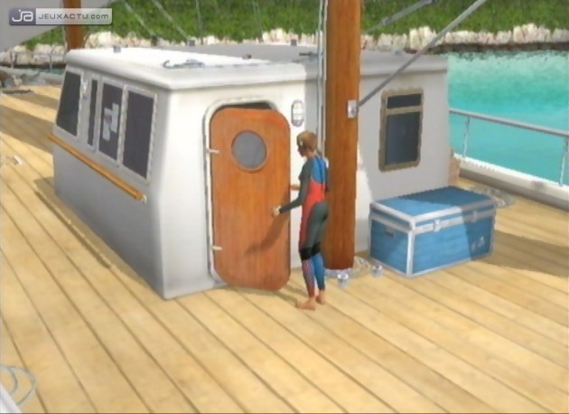 Endless Ocean ne se résume pas à une simple exploration des labyrinthes marins, mais prend également en considération la vie sur le bateau. En commençant par la cabine qui deviendra rapidement l'endroit où l'on passera la majeure partie de son temps à faire de la paperasse. Discrets au départ, les mails se feront de plus en plus nombreux par la suite, ce qui limite considérablement les temps morts. On aura différents types de missions à accomplir, comme initier un touriste à la plongée sous-marine par exemple, ou bien encore prendre des photos de poissons pour qu'un photographe puisse rédiger un dossier de presse. Mais le fil conducteur reste tout de même la découverte de nouvelles zones d'exploration, car c'est aussi l'objectif premier d'Endless Ocean, nous faire visiter tous les recoins de l'océan. On pourra prendre carrément le contrôle du bateau, ou plutôt indiquer sur la carte un point de chute pour s’y rendre. Le navire, c'est aussi un moyen de converser avec Catherine qui n'a pas sa langue dans la poche. Si elle n'hésitera pas à confier ses états d'âme, elle lâchera aussi quelques informations nécessaires pour continuer à progresser dans le jeu. Malheureusement, cela contribue à la facilité d’Endless Ocean qui a du mal à donner du fil à retordre. Le titre n'est pas un brise-méninges, mais plutôt un concentré de défis à relever sans aucune sanction en cas de raté. Sur le ponton du bateau, on peut aussi passer son temps à dresser ses compagnons de route, un dauphin pour commencer. Il s'agit en fait de les entraîner à faire des tricks - salto avant ou arrière, marcher sur l'eau, saut en hauteur... - en donnant des instructions à l'aide de la Wiimote. A vrai dire, le mécanisme n'est pas très claire, et il n'est pas rare que certaines figures s'exécutent au hasard. Endless Ocean ne tourne pas en haute-définition, certes, mais il réserve tout de même quelques endroits féériques qui méritent le détour. Par ailleurs, on appréciera l'effort qui a été fait sur la modélisation des animaux aquatiques, plus particulièrement les cachalots, les raies ou bien encore les lamantins. Même si l'environnement sous-marin affiche parfois des zones vides, le plaisir de passer un moment calme plusieurs mètres sous l’eau atténue la frustration. Pour finir, notons l’excellent travail réalisé sur l’ambiance sonore du jeu. Les plus réfractaires pourront tout de même changer la playlist via des fichiers MP3 que l'on importe avec une carte SD. Bien vu.