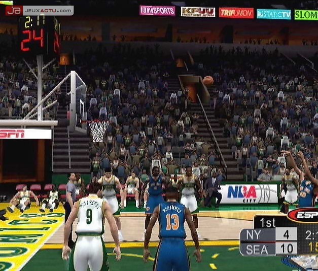 Titre très attendu, ESPN NBA 2K5 nous a livré tous ses secrets et répond parfaitement à nos attentes. Complet, beau, jouissif et long, il s’agit tout simplement d’une bombe ! Mais commençons par le commencement. Très orienté vers la simulation, le soft permet de développer une vraie stratégie de jeu afin que chaque situation colle le plus possible à la réalité. Exit donc les alley-oops spectaculaires et autres dunks monstrueux à tout bout de champs. Les mouvements sont donc très réalistes - notamment les pas latéraux - et la dynamique de l’action est assurée par la possibilité de changer de mouvement en pleine course ou encore se rencarder sur la position du ballon après un rebond grâce à la présence d’un indicateur au sol. Lors des matchs, on peut facilement identifier une petite icône au-dessus de chaque joueur représentant son poste sur le terrain : défenseur, spécialiste des 3 points, etc. Dans cette optique, impossible de perdre inutilement son temps à réfléchir sur le rôle de chacun - qui obligé à mémoriser le nom et la corpulence de tous les membres de l’équipe - mais en sus, il est possible de donner très rapidement des directives à vos joueurs en pleine partie.