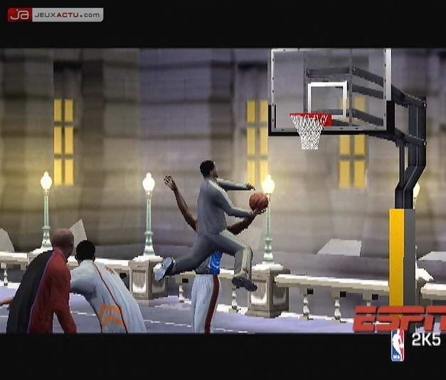 ESPN NBA 2K5 comporte suffisamment de modes de jeu pour assurer un maximum de plaisir et une durée de vie conséquente. Nous avons par exemple le One Vs. One, mais qui est très loin du style furieux de NBA Ballers. Il suffit de déborder son opposant sur un côté, de filer droit au panier et le ballon vous revient. Dans le même genre, on trouvera le 21, où chacun se bat pour sa peau afin d’atteindre le score de 21 points donc. On peut aussi jouer sur un demi ou un terrain entier après avoir défini ses propres règles. Autrement, on pourra toujours se tourner le mode Tournament ou Practice – qui permet d’assimiler les commandes de bases – mais on leur préférera bien vite les deux modes principaux : The Association et 24/7. Dans ce dernier, on va s’occuper d’un jeune basketteur que l’on va suivre 24 heures sur 24, 7 jours sur 7, sans même lui donner le temps de se nourrir ou d’aller aux toilettes (NDMaxime : t’as cru que c’était un Sims ?). Après tout, ce type est capable d’enchaîner Philadelphie-Seattle cinq fois dans la journée tout en prenant soin de participer à de nombreux tournois, de soigner son look et de se faire des relations. Son but ? Détrôner le plus grand joueur de tous les temps. Autant dire qu’il y a du travail. Pour ce faire, il devra enchaîner les victoires pour que ses statistiques évoluent et ainsi glaner quelques items et des ranking points, nécessaires pour participer à des compétitions au niveau de difficulté plus élevé.