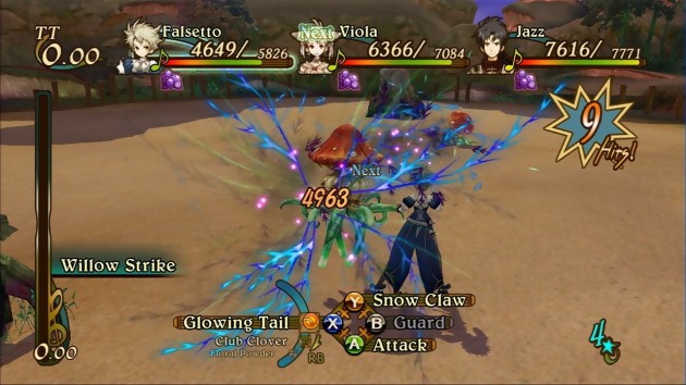 Si les assauts de notre équipe sont généralement dévastateurs, il faut garder dans un coin de sa tête que les ennemis disposent des mêmes règles. Et malgré une I.A. parfois déficiente (ennemis qui laissent le temps s’écouler, déplacements dans le vide), ils n’hésiteront pas à vous rouer de coups. C’est ici qu’intervient le système de parade. Plutôt que de faire sa victime, et à moins d’être attaqué de dos, il nous permet via un système basé sur un timing de se protéger d’une attaque. Plus ou moins rigoureux, ce système s’adaptera bien entendu à la vitesse d’attaque des adversaires. Un monstre puissant mais lent vous laissera davantage de temps pour pouvoir appuyer sur le bouton de garde, tandis que les assauts répétés d’un ennemi plus vifs demanderont une attention accrue. Ces parades qui engendrent tout de même des dégâts évolueront par la suite en offrant des possibilités de contre-attaques. En effet, les personnages ne sont pas les seuls à évoluer, le niveau de votre groupe augmentera également. Ces hausses imposées par le scénario modifieront tous les paramètres de combats hormis le facteur luminosité. Comprenez par là que le Temps Tactique illimité en début d’aventure se réduira de manière constante par la suite, tout comme le temps d’action. Le système de parade sera donc agrémenté d’une possibilité de contre-attaque, ou le système d’Echos d’une “Chaîne d’Harmonie” par exemple. Donc, si ce système réduit peu à peu le temps d’action, en contrepartie les possibilités offensives s’enrichissent, même si elles demanderont un peu plus de skill.