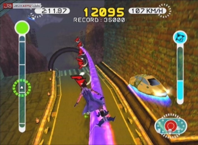 Exit les jeux affichant le haut de votre corps à l’écran, si EyeToy : AntiGrav se joue bien à la caméra, c’est désormais un avatar 3D qui vous représentera dans le jeu, laissant ainsi cours à une plus grande visibilité, qui se révèlera très vite indispensable. Vous l’aurez compris, AntiGrav est résolument différent des autres jeux EyeToy, et il était temps qu’un peu de changement se manifeste enfin.