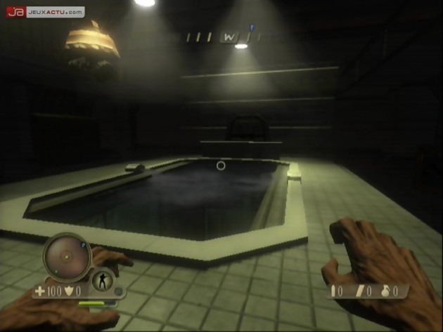 Où est le problème, me direz-vous ? Far Cry Instincts est beaucoup trop facile, vous rétorquerai-je. Et outre un manque de challenge évident, cette aisance déconcertante à avancer dans les niveaux noie les bonnes intentions issues des possibilités de gameplay varié. Là où nous annonçait une bonne dose d’infiltration, il n’y a que du très classique rentre-dedans. Pourquoi se fatiguer à poser des pièges, ramper sous les huttes et à prendre gare à ne pas faire se repérer là où le bon vieux rentre-dedans des familles est amplement suffisant. L’indicateur du niveau d’alerte des ennemis n’est alors plus utile et le fait que le viseur se teinte de rouge une fois un ennemi en mire nous permet même de tirer à l’aveugle sans prendre de gros risques. On avance, on tire dans le tas et on compte les cadavres, l’I.A. parfois défaillante n’étant pas là pour nous causer de véritables soucis. Entre les soldats qui se laissent allègrement tirer dessus ou les snipers qui se rapprochent de vous, les comportements laissent parfois à désirer. Pis, une fois transformé en mutant, vous regagnez constamment de la vie et la profusion des munitions et des kits de santé vous assure une progression désarmante de facilité. Il y a certes deux trois combats face à de gros mutants et un affrontement final un peu plus corsé, mais la sensation de parcourir des kilomètres sans réelle opposition est omniprésente. De plus, on regrettera un level design finalement très classique et n’hésitant pas à réitérer une situation donnée plus qu’il n’en faut. Les exemples sont légion dans le domaine, un des plus frappants étant un passage dans la jungle où vous croisez une première fois un groupe d’ennemis suivis par un sniper perché sur un arbre. OK, sympa à défaut d’être original, la séquence fonctionne plutôt bien. Deux minutes plus tard, nouveau groupe d’ennemis accompagnés d’un sniper sur un arbre. Mouais… Deux minutes plus tard, devinez ce qui se profile ? J’imagine que vous tenez la réponse… Si vous ajoutez à cela une musique vite insupportable, mes compagnons de bureau me regardant d’un œil de plus en plus sombre au fil des heures passées sur le jeu, vous comprendrez que Far Cry Instincts est loin d’être le hit annoncé.