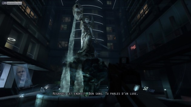 Premier élément à se présenter sur le banc des accusés : l'affichage tête haute, plus communément appelé HUD. Incurvé et encadrant le champ de vision, il a été pensé pour simuler une interface réelle, présente sur les lunettes du héros. Une bonne idée théorique qui, en pratique, produit l'effet inverse de celui recherché. Inutilement imposant, ce HUD donne l'impression d'observer les évènements depuis l'intérieur d'un bocal en verre, créant ainsi une distance artificielle avec l'action. Autre point gênant : l'ergonomie perfectible du PDA, pensé pour les manettes plus que pour les souris. La police trop grande engendre la présence d'ascenseurs, qu'on ne peut faire défiler à la mollette, l'agencement peu pratique des menus obligent à des clics et appuis de touche inutiles... autant de micro-coupures dans le rythme de l'aventure. Inutile de se voiler la face, il s'agit tout simplement d'une concession faite à la disponibilité du jeu sur PS3 et Xbox 360. Et ce n'est pas la seule. On peut également pester sur les conséquences des points de sauvegardes automatiques. Nombreux et bien placés, ils permettent certes de ne pas avoir à se préoccuper de l'assurance-vie du héros. Mais ils occasionnent un léger hoquet de l'action et, surtout, s'accompagnent d'un irritant message "Sauvegarde automatique en cours, n'éteignez pas votre ordinateur". Merci de nous rappeler que nous sommes devant notre PC, on commençait tout juste à nous croire dans l'univers du jeu... Ce reproche vaut également pour les versions consoles, car même si le procédé y est nettement plus habituel, il n'en est pas plus excusable. Même principe pour la répétition incessante des commandes ("appuyez sur E pour ramasser cet objet") totalement inutile passée la première demie-heure de jeu et anti-immersive au possible. Manifestement désireux de plaire au plus grand nombre, les développeurs ont d'une manière générale choisi d'un peu trop faciliter la vie du joueur. Ainsi, les objets à ramasser sont signalés par un cadre visible même à travers les obstacles, et le viseur devient rouge dès qu'il survole un ennemi, permettant donc de faire mouche même à travers un rideau de fumée... Espérons qu'un jour les éditeurs et développeurs finiront par comprendre que les joueurs console n'ont pas forcément besoin d'être pris par la main en permanence. Un jeu estampillé 18+ ne s'adresse pas à des enfants en bas âge, mais à des gens capables de se souvenir des commandes de base, conscients du fait qu'il ne faut pas éteindre leur machine à l'arrache, et ne voulant pas d'actions prémâchées. Non ?