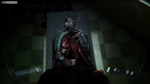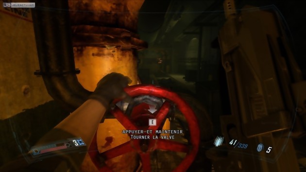 Premier élément à se présenter sur le banc des accusés : l'affichage tête haute, plus communément appelé HUD. Incurvé et encadrant le champ de vision, il a été pensé pour simuler une interface réelle, présente sur les lunettes du héros. Une bonne idée théorique qui, en pratique, produit l'effet inverse de celui recherché. Inutilement imposant, ce HUD donne l'impression d'observer les évènements depuis l'intérieur d'un bocal en verre, créant ainsi une distance artificielle avec l'action. Autre point gênant : l'ergonomie perfectible du PDA, pensé pour les manettes plus que pour les souris. La police trop grande engendre la présence d'ascenseurs, qu'on ne peut faire défiler à la mollette, l'agencement peu pratique des menus obligent à des clics et appuis de touche inutiles... autant de micro-coupures dans le rythme de l'aventure. Inutile de se voiler la face, il s'agit tout simplement d'une concession faite à la disponibilité du jeu sur PS3 et Xbox 360. Et ce n'est pas la seule. On peut également pester sur les conséquences des points de sauvegardes automatiques. Nombreux et bien placés, ils permettent certes de ne pas avoir à se préoccuper de l'assurance-vie du héros. Mais ils occasionnent un léger hoquet de l'action et, surtout, s'accompagnent d'un irritant message "Sauvegarde automatique en cours, n'éteignez pas votre ordinateur". Merci de nous rappeler que nous sommes devant notre PC, on commençait tout juste à nous croire dans l'univers du jeu... Ce reproche vaut également pour les versions consoles, car même si le procédé y  est nettement plus habituel, il n'en est pas plus excusable. Même principe pour la répétition incessante des commandes ("appuyez sur E pour ramasser cet objet") totalement inutile passée la première demie-heure de jeu et anti-immersive au possible. Manifestement désireux de plaire au plus grand nombre, les développeurs ont d'une manière générale choisi d'un peu trop faciliter la vie du joueur. Ainsi, les objets à ramasser sont signalés par un cadre visible même à travers les obstacles, et le viseur devient rouge dès qu'il survole un ennemi, permettant donc de faire mouche même à travers un rideau de fumée... Espérons qu'un jour les éditeurs et développeurs finiront par comprendre que les joueurs console n'ont pas forcément besoin d'être pris par la main en permanence. Un jeu estampillé 18+ ne s'adresse pas à des enfants en bas âge, mais à des gens capables de se souvenir des commandes de base, conscients du fait qu'il ne faut pas éteindre leur machine à l'arrache, et ne voulant pas d'actions prémâchées. Non ?