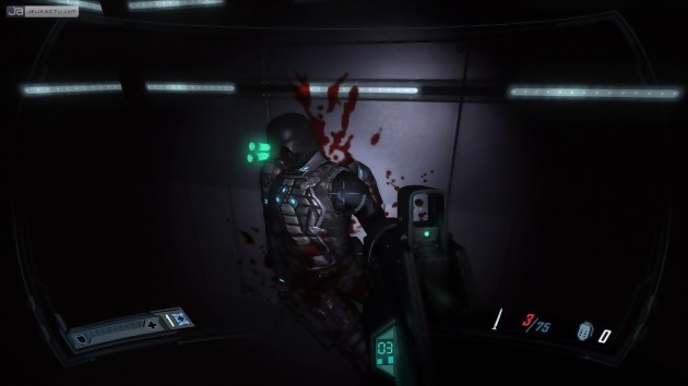 Premier élément à se présenter sur le banc des accusés : l'affichage tête haute, plus communément appelé HUD. Incurvé et encadrant le champ de vision, il a été pensé pour simuler une interface réelle, présente sur les lunettes du héros. Une bonne idée théorique qui, en pratique, produit l'effet inverse de celui recherché. Inutilement imposant, ce HUD donne l'impression d'observer les évènements depuis l'intérieur d'un bocal en verre, créant ainsi une distance artificielle avec l'action. Autre point gênant : l'ergonomie perfectible du PDA, pensé pour les manettes plus que pour les souris. La police trop grande engendre la présence d'ascenseurs, qu'on ne peut faire défiler à la mollette, l'agencement peu pratique des menus obligent à des clics et appuis de touche inutiles... autant de micro-coupures dans le rythme de l'aventure. Inutile de se voiler la face, il s'agit tout simplement d'une concession faite à la disponibilité du jeu sur PS3 et Xbox 360. Et ce n'est pas la seule. On peut également pester sur les conséquences des points de sauvegardes automatiques. Nombreux et bien placés, ils permettent certes de ne pas avoir à se préoccuper de l'assurance-vie du héros. Mais ils occasionnent un léger hoquet de l'action et, surtout, s'accompagnent d'un irritant message "Sauvegarde automatique en cours, n'éteignez pas votre ordinateur". Merci de nous rappeler que nous sommes devant notre PC, on commençait tout juste à nous croire dans l'univers du jeu... Ce reproche vaut également pour les versions consoles, car même si le procédé y est nettement plus habituel, il n'en est pas plus excusable. Même principe pour la répétition incessante des commandes ("appuyez sur E pour ramasser cet objet") totalement inutile passée la première demie-heure de jeu et anti-immersive au possible. Manifestement désireux de plaire au plus grand nombre, les développeurs ont d'une manière générale choisi d'un peu trop faciliter la vie du joueur. Ainsi, les objets à ramasser sont signalés par un cadre visible même à travers les obstacles, et le viseur devient rouge dès qu'il survole un ennemi, permettant donc de faire mouche même à travers un rideau de fumée... Espérons qu'un jour les éditeurs et développeurs finiront par comprendre que les joueurs console n'ont pas forcément besoin d'être pris par la main en permanence. Un jeu estampillé 18+ ne s'adresse pas à des enfants en bas âge, mais à des gens capables de se souvenir des commandes de base, conscients du fait qu'il ne faut pas éteindre leur machine à l'arrache, et ne voulant pas d'actions prémâchées. Non ?