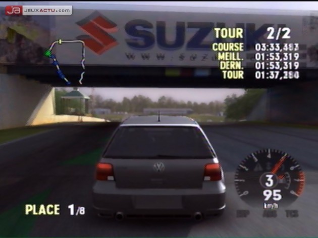 Si le mode arcade permet de débloquer de nouvelles voitures à acheter, le mode carrière reste la clé de voûte du titre. Débutant comme nous venons de le voir avec une voiture de série, les différentes épreuves vous permettront de recevoir de nouveaux véhicules, de la relique collector des années 80 aux plus grandes sportives, qui ne demandent qu’à aller encore plus vite. Grandes absentes du jeu, les qualifications ne se font malheureusement que virtuellement, et les premières courses se réalisant sur des distances relativement courtes, il ne faudra pas trop fauter pour fouler du pied la première marche du podium, surtout quand on connaît les résultats d’un impact. En effet, pour la première fois, les constructeurs ont autorisé les déformations sur leurs modèles, jusqu’au détachement et la perte de différentes pièces. Parce que l’on souhaite toujours pouvoir revendre une voiture impeccable, mais aussi parce qu’il faut payer les réparations pour la moindre égratignure, on se met alors à pester lorsqu’un concurrent se met à piler alors qu’on lui faisait l’aspi, ou au contraire lorsqu’un autre vient nous refaire l’arrière. C’est simple, ce n’est plus une voiture que l’on pilote, mais notre voiture. La prise de risque pour remonter à quelques virages de la fin déclenche alors une montée d’adrénaline jamais vue, et les frayeurs après avoir retardé son freinage ou en voyant la barrière de sécurité se rapprocher un peu trop ne se comptent plus. Au-delà de sa conduite réaliste où il faut savoir freiner pour aller vite, Forza Motorsport réussit le difficile pari de nous immerger totalement dans son univers. La réalisation technique n’est pas innocente non plus dans cette immersion et le jeu regorge de détails à en faire pâlir les plus puissants des PC. A coté de l’esthétique envoûtante des voitures, les pistes ont en effet été modélisées avec soin et surtout garderont tout au long de la course les traces de votre passage. La gomme abandonnée dans un dérapage imprévu ravivera donc des souvenirs quand vous repasserez à proximité, et les traces de peintures laissées sur les murs vous rappelleront la couleur d’origine de votre voiture avant le contact. Pour ne rien gâcher, les replays sont tout simplement magnifiques et on passerait presque autant de temps à admirer nos courses qu’à les faire. Les caméras sont judicieusement choisies, et l’effet de flou rajouté de temps à autre sous l’effet de la distance ou de la chaleur de la piste nous fait presque oublier que nous sommes devant un jeu. Les joueurs les plus férus de mécanique pourront même activer la télémétrie durant ces rediffusions pour analyser le comportement de la voiture et optimiser ses réglages. C’est puissant, c’est beau, et on en redemande.