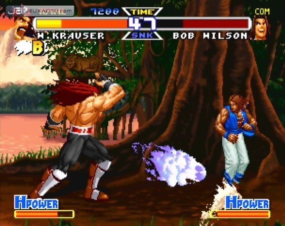 Real Bout Fatal Fury, Real Bout Fatal Fury Special et Real Bout Fatal Fury 2 : The Newcomers, tels sont les noms des trois derniers épisodes de la saga Fatal Fury, plus connue dans son pays d’origine sous le nom de Garo Densetsu. Sortis entre 1995 et 1998, ces trois volets constituent une trilogie un peu particulière, dans la sens où ils tranchent radicalement avec les précédents opus, aussi bien dans le fond que dans la forme. Avec Real Bout Fatal Fury en 1995, SNK tentait de redonner un souffle nouveau à sa série, mais aussi au genre de manière générale. Pour marquer la fracture, les développeurs ont opté pour un style graphique différent, plus cartoon dans l’âme et avec des personnages à la carrure imposante. S’il s’agit du même moteur graphique utilisé pour Fatal Fury 3, celui de Real Bout Fatal Fury semble plus abouti. On remarque d’ailleurs une véritable évolution au niveau des personnages, bien mieux animés et disposant d’une palette de coups plus conséquente. Avec la présence officielle de Yamakasi, Jin Chon Rei et Jin Chon Shu mais aussi l’entrée fracassante de Billy Kane et Duck King, le nombre de personnages dans Real Bout Fatal Fury se chiffre à 16 protagonistes. Une liste plutôt honorable, d’autant qu’il va falloir réapprendre quelques bases avant de pouvoir maîtriser le jeu de bout en bout.