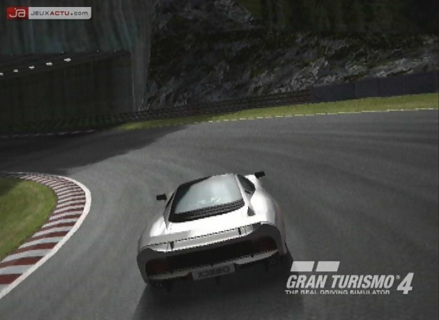 Sur le fond, Gran Turismo 4 adopte sensiblement la même ligne de conduite que ses prédécesseurs, à savoir que le titre est découpé en deux parties : le mode Arcade et le mode Gran Turismo, qui attire légitiment notre attention. Le tout est parfaitement organisé : l’école de conduite et les ateliers de tuning sont parfaitement distingués et les constructeurs sont classés par pays, les courses par niveau de difficulté et par genre. Avant toute chose, vous pourrez toujours transférer des fonds via la sauvegarde de Gran Turismo 3 dans la limite raisonnable de 100.000 crédits ou sauter les deux premiers permis si vous avez la version Prologue en votre possession. Des rêves plein la tête mais une simple pécule en poche, toutefois suffisante pour se procurer un véhicule d’occasion, le passage par la case permis deviendra cependant vite obligatoire, le nombre de courses sans permis se comptant sur les doigts de la main. Découpés en cinq licences à la difficulté croissante, la vocation de ces dernières n’est plus aussi contraignante qu’auparavant, axant davantage le côté "apprentissage". En effet, les 16 épreuves de chaque permis sont ici nettement plus ludiques et plus variés, mettant à profit des techniques de freinage ou permettant de négocier un virage en épingle, une chicane ou un circuit entier derrière un pace car sur n’importe quel type de revêtement et toujours dans un temps limité. Avant chacune d’entre elles, de nombreux conseils vous sont abordés sur la manière d’aborder le tracé avec en option la possibilité d’analyser vos données, votre fantôme, voir une démonstration ou encore faire figurer le tracé idéal à même le sol par un jeu de couleurs. A vous de mettre à profit tous ces outils pour vous initier aux arcanes qui font la différence entre la conduite et le pilotage. Après l’effort, le réconfort ! C’est ainsi que des petits breaks permettent de décompresser. Facultatives, ces épreuves restent plutôt sympathiques, consistant généralement à éviter ou renverser un nombre de plots donné. A noter également que la réussite au permis est récompensée par l’obtention d’un véhicule qui variera selon vos performances.