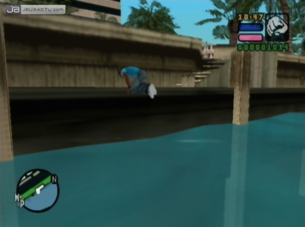 Maintenant, pour ce qui est du passage de la PSP à la PlayStation 2, Rockstar Leeds a fait les mêmes erreurs que pour Grand Theft Auto : Liberty City Stories. En premier lieu, on notera la cruelle absence des modes multijoueurs qui sont indubitablement l’atout de la version portable. GTA reste et restera un jeu pour les solitaires sur le monolithe noir de Sony malgré la présence d’un pseudo mode 2 joueurs sur GTA : San Andreas. Et donc Grand Theft Auto : Vice City Stories ne dérogera pas à la règle, ouch ! L’autre conversion manquait est au niveau du moteur graphique du jeu. Moins fin que sur PSP et son écran aux couleurs alléchantes, GTA : Vice City Stories dévoile de nouveaux bugs qui viennent s’ajouter à la longue liste sur laquelle on passait l’éponge. On en fera de même ici bien que ça commence à nous faire suer au même titre que les quelques caprices de frame-rate qui peuvent nous jouer des tours en missions. Sinon pour le reste, tout se passe sans heurt. On redécouvre avec émotion les musiques des années 1980 à travers une large gamme de radios toujours aussi éclectiques, bourrées d’humour et assurées par des animateurs hors pairs. Mais la B.O de GTA : Vice City Stories ne serait rien sans les doublages au poil orchestrés par Rockstar Games et qui conviennent à la perfection à chaque personnalité. Enfin on notera pour terminer que la configuration de la manette à quelque peu changer notamment pour la croix multidirectionnelle qui devient un stick analogique gauche bis.