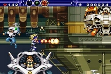 Du début jusqu'à la fin, Gunstar Future Heroes a franchement tout d’un grand. Les fous furieux de Treasure et de Sega ont allié leur maîtrise du shoot frénétique pour faire en sorte que la monotonie soit un concept banni de notre esprit. C’est bien simple, ici aucune séquence ne ressemble à la suivante. Gunstar Future Heroes use et abuse de toutes les ficelles techniques que la Game Boy Advance peut accomplir. A savoir les fameuses rotations et autres zoom du Mode 7, qui nous renvoient immédiatement aux bonnes vieilles querelles de l’âge d’or des 16-bits. Ce mode graphique alors exclusif à la machine de Nintendo simulait la troisième dimension en fournissant des fonctions spécifiques pour l'animation des sprites, et dont les représentant les plus célèbres sont F-Zero, Pilotwings ou encore StarWing sur Super Nintendo. Ouais, mais en attendant, Gunstar Heroes, c’était sur Megadrive, na !