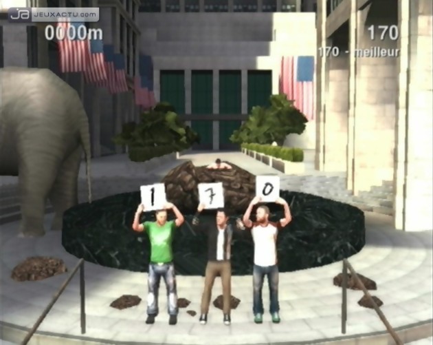 Bien que ce soit vous qui contrôlez ces énergumènes, vous prenez donc le relais du malheureux réalisateur dès le premier des sept épisodes qui composent cette nouvelle saison de Jackass. Chaque épisode est lui-même composé de cinq séquences différentes, toutes assimilées à un jeu différent bien entendu. Après un calcul rapide, c’est donc à trente-cinq mini-jeux auxquels nous avons droit ici. Si l’humour potache que l’on connaît à nos hommes revient à chaque instant pour le plus grand plaisir des amateurs, on peut par contre signaler les efforts fournis par Sidhe Interactive pour diversifier le gameplay, et ne pas sombrer dans la facilité. Jeu de course, épreuve musicale, phase de tir, de précision, d’adresse, bref pour peu que l’on accroche à l’univers pipi-caca, il y a de quoi faire. Certains doublons pointent assez vite le bout de leur nez, mais pas de quoi crier au scandale, le cadre même du tournage ou les objectifs à remplir étant suffisamment différent pour que l’illusion fonctionne. En parlant d’objectifs, ils seront, en fonction des épreuves, au nombre de 3 ou de 5. Inutile de tous les remplir cependant, puisque le but du jeu et d’amasser 500 000 dollars par épisode pour débloquer le suivant, sachant qu’un objectif rempli gonflera votre cagnotte de 30 000 dollars. A cela s’ajoute des bonus liés à votre intégrité physique notamment, à laquelle il faudra bien évidemment nuire. L’argent se gagne donc facilement, et permet ainsi de toucher rapidement aux épreuves qui constituent les épisodes suivants. Quant aux  fous furieux pour qui arriver au bout du mode Histoire MTV ne suffit pas, il reste le mode Défi, où le challenge sera plus corsé, et où l’argent amassé permettra de déverrouiller toute sorte de contenu bonus via la boutique jackass (personnages cachés, accessoires, vidéos…). Autant dire que la durée de vie est potentiellement correcte. Reste maintenant à savoir si une fois sorti de l’aventure principale, vous serez prêt à revenir sur le titre. Car le jeu a beau être agréable, notamment de part sa prise en main, il est assez vite lassant, voire lourd quand on est hermétique aux frasques de cette troupe. De plus, le replay value frôle le zéro absolu, puisqu’à l’instar des gags qui nous sont servis ici, on sourit sur le moment, puis on oublie.
