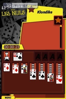 Bien connue des cancres en quête de remises à niveau ou des personnes désireuses de se cultiver avec légèreté, la collection "Pour les Nuls" se décline depuis peu sur des sujets de plus en plus variés, mais également, et c’est ce qui nous intéresse ici, en jeu vidéo. Mais contre toute attente, l’opus dont il s'agit aujourd’hui n’a pas pour vocation de nous éduquer sur une quelconque discipline que l’on suivait walkman aux oreilles au lycée, mais de nous occuper durant cette tant attendue période de grandes vacances. Jeux de Voyage pour les Nuls est effectivement une compilation de mini-jeux qui se vante de proposer plus de 600 casse-têtes en son sein. En réalité, derrière ce chiffre plutôt flatteur et crânement mis en avant sur la jaquette, vous pouvez tabler sur environ 500 grilles de Sudoku, un plateau d’échecs et une variété de dix Solitaires - dont le klondike à trois cartes démocratisé par Windows, le pyramide, l’accordéon, ou encore le fameux free cell. Pas de quoi sauter au plafond, d’autant que dans le style compilation, la DS dispose d’une carte invaincue pour le moment en la personne de 42 Jeux Indémodables, dont la sobriété et l’efficacité ne sont plus à prouver. Le minimum que l’on puisse demander à Jeux de Voyage pour les Nuls est heureusement assuré, la prise en main tactile ne souffrant pas d’imprécisions et différentes options pour le Sudoku (saisi du chiffre ou sélection sur une grille par simple clic) étant proposées. Rien n’est à déplorer non plus du côté de la représentation visuelle des différents jeux. Ce qui n’est pas forcément le cas des menus qui reprennent la direction artistique des bouquins. Autant dire que ce n’est pas bien beau et que les couleurs ne sont pas du meilleur goût. Heureusement que le tout reste parfaitement lisible et fonctionnel. En fait, ce qui gêne le plus avec Jeux de Voyage pour les Nuls vient de son manque d’originalité, de personnalité et de convivalité. Le titre d’Electronic Arts fait clairement figure de production alimentaire, ne se basant que sur son nom bien connu pour espérer se vendre par cartons. Même les échecs nous obligent à affronter l’ordinateur. Le seul aspect pédagogique que l’on était en droit d’attendre d’un jeu tiré d’une telle gamme vient ici des différentes règles - sobrement distillées dans les menus - et des entraînements durant lesquels une fonction d’aide apparaît pour nous accompagner dans notre apprentissage. Pas de quoi faire de l’ombre à la concurrence donc, et encore moins justifier un tel patronyme. Une petite section "Conseils et débrouillardise" n’aurait par exemple pas été de refus, avec des exemples de jeux de plage nécessitant trois cailloux et quelques participants pas forcément adeptes de farniente. Certes, la DS n’aurait servi à rien après nous avoir livré les instructions, mais au moins, la cartouche se serait montrée utile durant les vacances. Car autant être franc et réaliste : qui s’embêtera sur des passes-temps qui nous occupent à longueur d’année dans le RER ou au bureau, alors que le soleil ne demande qu’à rôtir nos fesses ?