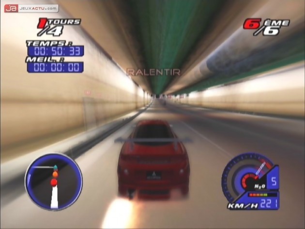 Dès l’introduction du jeu, le ton est donné. Après une vidéo très Fast & Furious et lorgnant sérieusement du coté de ce qui se fait chez un certain Need For Speed, vous voilà prêt à créer votre bande de pilotes et à faire fondre la gomme. Vous commencerez donc par choisir le nom et le logo de votre groupe, ainsi qu’un téléphone qui vous permettra de joindre plus tard vos concurrents pour les défier. Tout simplement inutile, ce choix de téléphone n’est que prétexte à faire la promo de Motorola, Sharp, Sony et Vodafone pour l’opérateur. Après tout, il faut bien manger. Mais revenons au jeu. Si pour la première course vous vous voyez confier un véhicule, il faudra bientôt acheter votre première auto (parmi des modèles officiels) et en faire un bijou aussi rapide qu’esthétique. Neuve ou d’occasion, votre première acquisition passera de toute façon par la case garage, histoire de la préparer un minimum pour ne pas vous faire larguer en course, et accessoirement de lui donner du style. Peintures, jantes, bas de caisse, hauteur, décalco, tout est disponible pour relooker les voitures de série en futures stars de cinéma. Une fois prêt, à vous de choisir une épreuve sur le calendrier ou d’en monter une en y invitant les personnes déjà rencontrées. Et si vous avez le choix dans la date, vous l’aurez aussi sur le type d’épreuve, sa localisation et les tarifs d’entrée. Il faut dire que monter une rencontre coûte plus d’argent que de temps, et il faudra savoir la rentabiliser correctement.