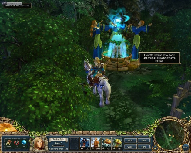 Comme dans la plupart des hack & slash, le développement du héros s'effectue à travers trois arbres de compétences (puissance, esprit, magie) qui influent grandement sur ses capacités. Naturellement, les objets d''inventaire revêtent également une certaine importance. Plus étonnant, ils se voient secondés par la possibilité de se marier et d'engendrer des enfants ! Avoir une femme apporte un bonus (qui dépend de la donzelle en question) et quatre cases d'inventaire supplémentaires... qui au final pourront être occupées par les descendants, également sources de bonus. Si l'envie vous en prend, vous pourrez même divorcer et abandonner tout ce beau monde, pour mieux recommencer avec une autre ! Mais attention, la femme délaissée emmène non seulement sa progéniture, mais également un cinquième de votre or... Les développeurs ne manquent manifestement pas d'humour ! D'ailleurs, ils assument sans sourciller tous les clichés de l'heroïc-fantasy, et les détournent même régulièrement au profit de situations qui font souvent mouche. Riches, nombreux et bien écrits, les dialogues ne manquent pas de piquant et permettent même parfois de résoudre certaines quêtes autrement que par le combat. On n'en attendait pas tant ! Hélas, ces dialogues se voient quelque peu malmenés par une traduction en dents de scie qui, si elle assume globalement plutôt bien le flot de textes, se prend régulièrement les pieds dans le tapis. Outre les "inévitables" fautes de frappes, d'orthographe ou de grammaire, on y trouve également quelques incohérences (un personnage appelé une fois Iron Richard , une fois Richard Dacier, la "boîte enragée" qui devient parfois la "boîte de rage"...). Et, tel un furoncle sur le nez d'une jolie princesse, le comble est atteint avec la traduction erronée de "turn" en "tourner". "Tourner 1", "Tourner 2" affiché en gros à chaque nouveau tour de jeu, ça la fout un peu mal...