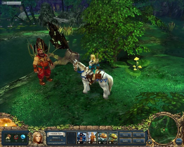 Comme dans la plupart des hack & slash, le développement du héros s'effectue à travers trois arbres de compétences (puissance, esprit, magie) qui influent grandement sur ses capacités. Naturellement, les objets d''inventaire revêtent également une certaine importance. Plus étonnant, ils se voient secondés par la possibilité de se marier et d'engendrer des enfants ! Avoir une femme apporte un bonus (qui dépend de la donzelle en question) et quatre cases d'inventaire supplémentaires... qui au final pourront être occupées par les descendants, également sources de bonus. Si l'envie vous en prend, vous pourrez même divorcer et abandonner tout ce beau monde, pour mieux recommencer avec une autre ! Mais attention, la femme délaissée emmène non seulement sa progéniture, mais également un cinquième de votre or... Les développeurs ne manquent manifestement pas d'humour ! D'ailleurs, ils assument sans sourciller tous les clichés de l'heroïc-fantasy, et les détournent même régulièrement au profit de situations qui font souvent mouche. Riches, nombreux et bien écrits, les dialogues ne manquent pas de piquant et permettent même parfois de résoudre certaines quêtes autrement que par le combat. On n'en attendait pas tant ! Hélas, ces dialogues se voient quelque peu malmenés par une traduction en dents de scie qui, si elle assume globalement plutôt bien le flot de textes, se prend régulièrement les pieds dans le tapis. Outre les "inévitables" fautes de frappes, d'orthographe ou de grammaire, on y trouve également quelques incohérences (un personnage appelé une fois Iron Richard , une fois Richard Dacier, la "boîte enragée" qui devient parfois la "boîte de rage"...). Et, tel un furoncle sur le nez d'une jolie princesse, le comble est atteint avec la traduction erronée de "turn" en "tourner". "Tourner 1", "Tourner 2" affiché en gros à chaque nouveau tour de jeu, ça la fout un peu mal...