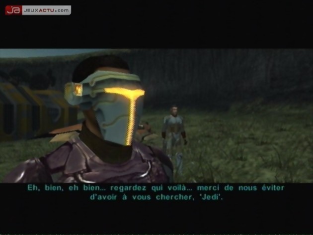 Ensuite, l’univers et l’histoire constituent le background du jeu, c’est l’habillage. Ici c’est Star Wars mais on pourrait y mettre n’importe quoi (des Schroumphs, des Bisounours ou même des Barbies). En parlant d’histoire, revenons à celle qui nous intéresse, ici celle du jeu. Autant vous prévenir de suite, ceux qui n’auront pas joué à KOTOR premier du nom, ne seront pas perdus mais seront en revanche beaucoup moins sensibles à l’histoire pusiqu’elle fait référence à Revan et Malak, les deux protagonistes principaux du premier volet. Il est donc préférable d’avoir jouer au titre original pour en saisir toutes les nuances bien que ce ne soit pas vital non plus. L’histoire se déroule cinq ans après les événements de KOTOR et comme par hasard, on nous refait le coup du jedi amnésique. On ne sait plus rien de son passé et on se trouve être une buse sans les pouvoirs de la Force (ça devient un peu une habitude, déjà dans KOTOR mais aussi dans la série Jedi Knight). Bref c’est la loose totale ou presque.