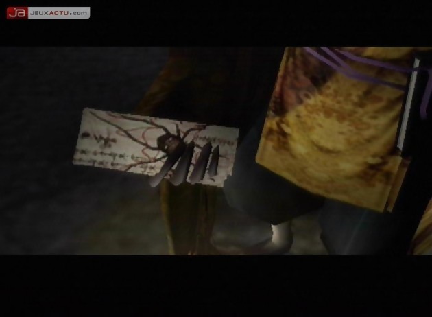 L’élégante Utsuki et la téméraire Sakuya sont les deux avatars choisis par From Software pour vivre la même galère sordide, chacune en vertu d’un objectif différent. La première, fille du grand astrologue local, est à la recherche de sa sœur, et la seconde est une apprentie astrologue envoyée avec son clan pour enquêter sur les mystérieuses circonstances entourant le domaine du seigneur Fujiwara, qui n’est rien de moins que le chef de la famille la plus puissante du pays. Les enjeux de Kuon nécessitent de vivre l’aventure avec chacun des deux protagonistes pour compléter le puzzle. Sans atteindre des sommets, l’intrigue suffit à s’immerger, quand bien même on s’étonnera de l’absence totale de mouvements des lèvres pendant les dialogues. On peut toutefois écouter ces ventriloques en version originale. Les ficelles narratives restent bien classiques. Des personnages qui se croisent par-ci par-là, et surtout l’imparable lecture de notes et journaux intimes glanés ça et là, une fidèle habitude du genre. Le cadre du Japon ancien (et non pas "médiéval", comme on peut le lire un peu partout ailleurs) se marie plus qu’agréablement avec l’ambiance tamisée et glauque de Kuon. Les mythes et légendes du folklore japonais sont déjà fort bien fournis à cette époque, même si Kuon n’en emprunte qu’une petite poignée. Cependant les références politiques et philosophiques sont nombreuses et raviront les amateurs. Outre l’Onmyodo, l’aventurier rencontrera nombre d’éléments issus du Bouddhisme. De même, le soft est profondément ancré dans le Shintoisme, religion purement japonaise selon laquelle chaque être vivant est doté d’un esprit "Kami". Une notion importante à comprendre puisque toute l’horreur de l’intrigue de Kuon prend ses racines autour de deux êtres à priori peu hostiles, des mûriers. De quoi te glacer la sève, vieille branche ! Pardon.