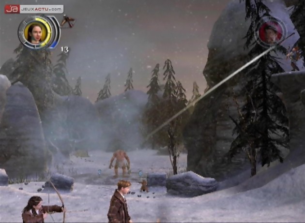 Pour mettre sur pied l’adaptation vidéoludique du Monde de Narnia, Traveller's Tales n’a pas hésité à puiser ses inspirations à droite et à gauche. Un peu de Seigneur des Anneaux pour son côté beat’em all et ses cinématiques passant du réel au virtuel, un soupçon de Harry Potter pour la possibilité de permuter de personnage et d’autres détails qui font référence à des classiques du genre. Mais à force de piocher chez les autres, Le Monde de Narnia a oublié de se trouver une identité propre, celle-là même qui pourra le différencier des autres productions du genre. Aux commandes des quatre rejetons Pevensie, le joueur devra apprendre à switcher d’un personnage à un autre pour profiter de leurs aptitudes et ainsi avancer sans encombre. Frêle mais pas inutile, Lucy, la plus jeune des quatre, peut se faufiler dans les coins les plus étriqués afin d’activer un levier ou bien encore redonner un peu (beaucoup même) de santé aux autres si le besoin se fait sentir. Même s’il n’a pas la force de son grand frère Peter, Edmund reste un personnage idéal pour combattre les nombreux assauts des ennemis. Il peut également grimper aux arbres et autres lampadaires pour atteindre des bonus trop haut perchés. Vient ensuite Suzan, capable d’utiliser plusieurs artifices comme cette flûte de pan bien pratique pour endormir les trolls un peu trop costauds. Archer dans l’âme, Suzan pourra également abattre des ennemis à distance. Reste alors Peter, l’aîné du groupe, le personnage puissant prompt à tenir tête aux ennemis les plus féroces et doté d’une endurance à toute épreuve. Si le danger venait à devenir trop critique, il sera possible d’allier les forces de nos quatre héros en leur demandant de travailler en tandem. Les coups se révèlent alors plus puissants et certains obstacles ne sont surmontables qu’en duo.