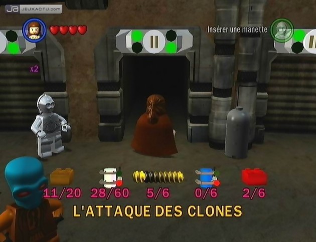 Et c’est chose faite ! Les développeurs de Traveller's Tales ont en effet compris qu’il manquait un certain dynamisme à leur LEGO Star Wars : Le Jeu Vidéo, titre basé sur les épisodes I, II et III de la série. Ainsi donc, "La Menace Fantôme", "L’Attaque des Clones" et "La Revanche des Sith" propose des phases de jeu beaucoup plus rapides, ce qui conviendra à tout un chacun et surtout à tous ceux qui sont tombés sous le charme de LEGO Star Wars II : La Trilogie Originale l’année dernière. La trilogie des années 1970 n’a, pour sa part, pas évolué d’un sou. On retrouve comme toujours Un Nouvel Espoir, l’Empire Contre-attaque et le Retour du Jedi divisé en six chapitres, oscillant entre phases de plates-formes pures, combats frénétiques aux sabre-lasers ou aux pistolets blasters, pilotage de X-Wing, Landspeeder ou Faucon Millenium. A contrario, ces séquences de jeu, moins nombreuses dans les trois premiers épisodes (chronologiquement parlant), ont également été améliorées. Difficile de ne pas penser aux courses de pod-racers du jeune Anakin Skywalker qui avait de quoi en énerver plus d’un en 2005. Courir contre la montre appartient désormais au passé. A ce jour, il faudra simplement se frotter au redoutable Sebulba tout en récupérant pièces, mini-kits et briques rouges pour qui veut terminer le jeu à 100%. Et ce n’est pas une mince affaire que de retourner LEGO Star Wars : La Saga Complète jusqu’au moindre pixel. Comme précédemment, le niveau de difficulté est plutôt faiblard et on enchaîne les épisodes sans aucun problème. Mais tout l’intérêt du titre de Traveller's Tales consiste à revisiter les niveaux avec des personnages inédits pour découvrir de nouveaux passages, mettre la main sur des objets rares et surtout vous gargariser de pièces d’or afin de tout dépenser dans la boutique du jeu. Même ici, vous ne serez pas au bout de vos surprises avec près de 128 personnages à débloquer, au fur et à mesure de l’histoire et en en achetant certains, une grosse dizaine de véhicules, des cheat codes et des vidéos à foison. Et pour qui en redemanderait, il est également possible de débloquer des niveaux inédits en fonction de votre progression. Et pour que le plaisir soit décuplé, les développeurs ont intégré un mode deux joueurs en coopératif comme pour LEGO Star Wars : Le Jeu Vidéo et LEGO Star Wars II : La Trilogie Originale. Mais sachez que cette fois-ci, il sera enfin possible de partir en voyage de noce sur Tatooine, Dagobah ou Kashyyyk en ligne. Malgré quelques petits problèmes de lag, cette option est la bienvenue et donne un regain d’intérêt à certains automatismes de jeu récurrents.
