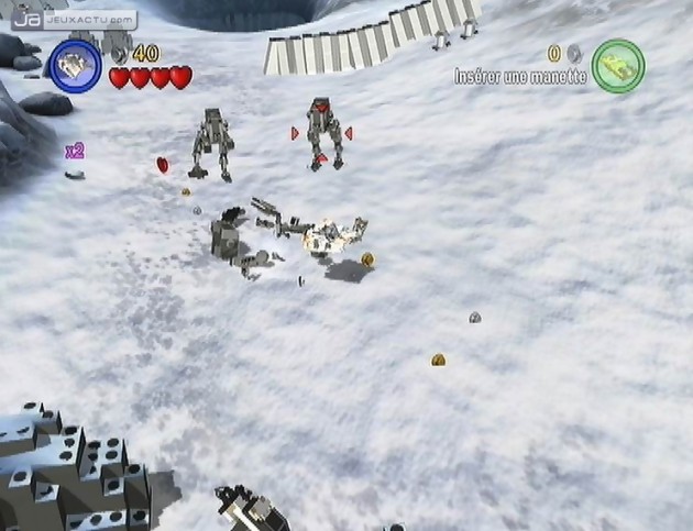 Et c’est chose faite ! Les développeurs de Traveller's Tales ont en effet compris qu’il manquait un certain dynamisme à leur LEGO Star Wars : Le Jeu Vidéo, titre basé sur les épisodes I, II et III de la série. Ainsi donc, "La Menace Fantôme", "L’Attaque des Clones" et "La Revanche des Sith" propose des phases de jeu beaucoup plus rapides, ce qui conviendra à tout un chacun et surtout à tous ceux qui sont tombés sous le charme de LEGO Star Wars II : La Trilogie Originale l’année dernière. La trilogie des années 1970 n’a, pour sa part, pas évolué d’un sou. On retrouve comme toujours Un Nouvel Espoir, l’Empire Contre-attaque et le Retour du Jedi divisé en six chapitres, oscillant entre phases de plates-formes pures, combats frénétiques aux sabre-lasers ou aux pistolets blasters, pilotage de X-Wing, Landspeeder ou Faucon Millenium. A contrario, ces séquences de jeu, moins nombreuses dans les trois premiers épisodes (chronologiquement parlant), ont également été améliorées. Difficile de ne pas penser aux courses de pod-racers du jeune Anakin Skywalker qui avait de quoi en énerver plus d’un en 2005. Courir contre la montre appartient désormais au passé. A ce jour, il faudra simplement se frotter au redoutable Sebulba tout en récupérant pièces, mini-kits et briques rouges pour qui veut terminer le jeu à 100%. Et ce n’est pas une mince affaire que de retourner LEGO Star Wars : La Saga Complète jusqu’au moindre pixel. Comme précédemment, le niveau de difficulté est plutôt faiblard et on enchaîne les épisodes sans aucun problème. Mais tout l’intérêt du titre de Traveller's Tales consiste à revisiter les niveaux avec des personnages inédits pour découvrir de nouveaux passages, mettre la main sur des objets rares et surtout vous gargariser de pièces d’or afin de tout dépenser dans la boutique du jeu. Même ici, vous ne serez pas au bout de vos surprises avec près de 128 personnages à débloquer, au fur et à mesure de l’histoire et en en achetant certains, une grosse dizaine de véhicules, des cheat codes et des vidéos à foison. Et pour qui en redemanderait, il est également possible de débloquer des niveaux inédits en fonction de votre progression. Et pour que le plaisir soit décuplé, les développeurs ont intégré un mode deux joueurs en coopératif comme pour LEGO Star Wars : Le Jeu Vidéo et LEGO Star Wars II : La Trilogie Originale. Mais sachez que cette fois-ci, il sera enfin possible de partir en voyage de noce sur Tatooine, Dagobah ou Kashyyyk en ligne. Malgré quelques petits problèmes de lag, cette option est la bienvenue et donne un regain d’intérêt à certains automatismes de jeu récurrents.