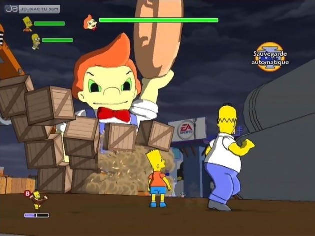 The Simpsons : Hit & Run, sorti sur Xbox et PS2, se voulait un GTA-like situé à Springfield. Le résultat était franchement réussi, mais cette fois, les développeurs ont opté pour un style légèrement différent. Certes il y a toujours cette bonne vieille ville comme point de départ, mais les missions sont indépendantes les unes des autres et se situent chacune dans un univers différent. Si bien qu’on vit un peu l’aventure comme une succession d’épisodes, et donc qu’on a l’impression d’être au cœur d’une saison inédite. Et surtout, c’est l’occasion de nous offrir à chaque fois de grands délires puisque le studio s’en est donné à cœur joie. Evidemment, on trouve des tonnes de références à l’univers de la série avec, entre autres, Monsieur Scintillant, le Royaume du Chocolat, l'invasion des Dauphins... Tous nos personnages favoris ont leur rôle, plus ou moins grand, dans l’aventure, depuis Ned Flanders jusqu’à Patty et Selma en passant par Skinner, le professeur Frink, le vendeur de BD, Smithers, grand-père Simpson… Ce serait déjà très bien comme ça, mais les développeurs ont eu une grande idée. Si Les Simpson, la série, s’amuse régulièrement à mettre en boite (entre autres) la Fox et la télévision en général, Les Simpson : le jeu se devait d’en faire de même avec Electronic Arts et le jeu vidéo. Et là, il faut reconnaître qu’ils ont fait très fort !