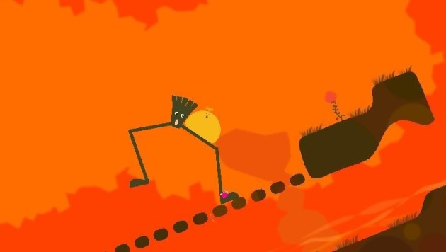 LocoRoco est épuré donc, pour mieux se concentrer sur l’essentiel : les émotions, bien évidemment. On ne le répètera jamais assez, mais quand on a compris ça, on a tout compris. Dans le cadre de LocoRoco, l’image des petits chiens (ou chats, porcs, lézards, hippocampes, crocodiles, tout ce qui vous émeut) qui s’agitent vivement les uns sur les autres de façon insouciante dans leur petit microcosme, est vraiment appropriée. Sachez que vous n’êtes qu’un accessoire dans le monde de LocoRoco, que vous touchiez la PSP ou pas, le LocoRoco ne cessera jamais de bouger. Il vous regarde avec ses petits yeux ronds, sourit, chante, s’étonne, se retourne, sautille, roule, grogne, s’étonne, s’émerveille, et le tout bien entendu de façon grotesque, donc géniale. Bref, les LocoRoco sont vivants, bons vivants même. Leurs embûches ? Rares. Il faut d’abord comprendre qu’un gros LocoRoco est composé de plusieurs répliques minuscules, dont le nombre représente en quelque sorte la jauge d’énergie. Certes ils peuvent se faire manger un morceau de graisse par un Muja Muja, ou perdre un morceau en se piquant contre une écharde, mais très rare sont les Game Over, et aucun de ces gouffres sans fonds propres aux jeux de plates-formes ne viendra vous empêcher de gambader en tout sérénité. Gluant, fluide et élastique, le LocoRoco semble tout aussi chétif qu’inarrêtable. Les presses l’écrase mais le ne tue pas, les lames le découpe mais le ne tue pas, les scies le taillade en morceaux mais ne le tue pas, car une fois le LocoRoco décomposé, il suffit de crier avec le bouton rond pour se réunir en un gros et unique blob bien gras. Pour persévérer dans un cadre comparatif avec le Kirby de la Nintendo DS, vous aurez compris que malgré sa relative insouciance et son côté impalpable, LocoRoco est le personnage le plus chétif qu’on connaisse dans un jeu vidéo. Encore plus incapable que Kirby, qui pouvait quand même déclencher quelques pouvoirs. Ici, à part pour le faire sautiller sur un ou deux hiboux, il est difficile de dresser un LocoRoco pour l’attaque, qui ne vous cassera pas grand-chose, si ce n’est peut-être les oreilles.