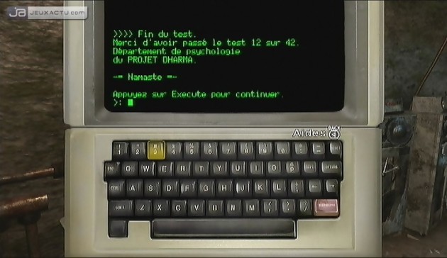 Mais parce qu’on incarne ici un personnage créé de toute pièce par Ubisoft, les développeurs ont inclus également des niveaux inédits et notamment pour les séquences d’exploration pure et dure. Ainsi, lorsque vous vous glissez à l’intérieur d’une grotte inhospitalière, mieux vaut être bien préparé. N’oubliez pas d’embarquer torche, bidon d’huile ou lampe pour vous éclairer dans ces galeries lugubres où la moindre chute est mortelle. Mais bien évidemment, les boutiques se font rares sur cette île, c’est pourquoi vous aurez recours au troc pour glaner de nouvelles marchandises. La moindre papaye, bière, bouteille d’eau ou noix de coco peut intéresser l’un de vos camarades de galère. Après le dialogue et l’exploration, il est temps de faire marcher ces méninges et pour ce faire, Ubisoft nous a préparé quelques puzzles mathématiques et tests de QI qui demanderont parfois plus de logique qu’il n’y paraît. Rien d’insurmontable cependant. La dernière séquence, pas franchement réussie mais heureusement assez rare, concerne les phases de tir lorsque vous avez récupéré un flingue à la visée imprécise. Imprécis est d’ailleurs le terme adéquat pour parler du gameplay de Lost : Les Disparus - Le Jeu Vidéo. Le personnage se déplace avec une certaine raideur et par conséquent, il faut s’y reprendre à deux ou trois fois pour interagir avec un objet, ramasser un item ou prendre une photo d’un élément clef, même pendant les séquences de souvenirs qui vous en apprennent plus sur votre passé. Chaque chapitre commence par un flashback où il faudra photographier un élément précis à un moment donné. Si vous ratez, pas de panique, la séquence recommencera au début pour vous donner le temps d’ajuster votre zoom. Enigmes, souvenirs ou explorations, peu importe les phases de jeu on est rarement bloqué, et en raison de sa linéarité, Lost : Les Disparus - Le Jeu Vidéo se boucle en une soirée. Un soft court qui aurait mérité plus de profondeur de jeu car d’un point de vue visuel, le titre s’en sort pas trop mal. La jungle et la plage propose un panorama paradisiaque à la différence des niveaux en intérieur (grottes, bunkers…) aux textures ternes et sans finesse. On pourrait également regretter une synchronisation labiale faite à la va-vite et qui ne colle pas tout le temps aux dialogues. Dommage.