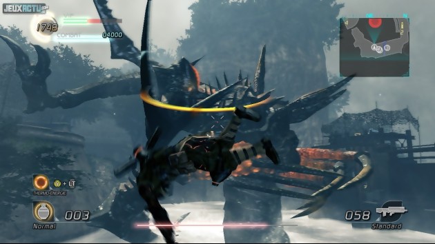 Comme dans la première itération, la Thermo Énergie reste le point névralgique du jeu. Cette substance de couleur orange se récupère en élimlinant des ennemis, en détruisant des objets ou en activant des points de contrôle. Dans Lost Planet, elle diminuait en permanence à cause du froid glacial qui frappait la planète, mais servait aussi à se regénérer automatiquement après un laps de temps et permettait également de recharger certaines armes aux munitions infinies. Les choses ont légèrement changé. Le stock d'énergie ne diminue plus et pour se soigner, il faut impérativement puiser dedans en appuyant sur la touche Start ; encore un autre exemple de manque d'ergonomie dans la jouabilité. Autre fonction pratique qui a été donnée à la Thermo-Énergie : la faculté de pouvoir réparer ses Vital-Suit endommagés. Une action à entreprendre en pleine partie, souvent même en plein combat, ce qui éviter certes d'aller à la recherche d'un autre robot situé de l'autre côté de la map, mais qui nous rend alors vulnérable aux attaques ennemies. Jouer les garagistes alors que les tirs nourris adverses nous assaillent est donc fortement déconseillé. Lost Planet 2 modifie quelque peu le système de Game Over puisqu'il est désormais possible de choisir un point de contrôle où réapparaître. Un système bien évidemment hérité du jeu multi, le titre produit par Jun Takeuchi se voulant désormais orienté pour le jeu à plusieurs. Cependant, ces respawn ne sont pas infinis et consomment 500 points d'une autre jauge dédiée à cet effet. Mais l'ajout le plus notable dans Lost Planet 2 reste la possibilité de jouer la totalité de la campagne en coopération à deux sur la même console et jusqu'à quatre en ligne. Dans ce mode, la jauge dédiée aux points de vie est partagée entre les joueurs et dès que cette dernière s'est totalement vidée, la partie s'arrête brusquement et ce pour tous ! Il faut donc redoubler de vigilance, bien s'organiser et apprendre à communiquer avec ses partenaires en partageant avec intelligence sa Thermo-Énergie. Ce mode est sans nul doute l'une des plus grandes forces du jeu et décuple fortement les sensations. Monter à plusieurs sur un Vital-Suit, se cacher derrière le bouclier d'un de ses camarades, s'organiser pour prendre d'assaut l'un des boss gargantuesques et attaquer les ennemis par revers entraîne des parties endiablées. Sans équivoque, la coopération à quatre constitue le cœur de Lost Planet 2, contrairement à un mode solo plus plat où il faut compter sur des personnages gérés par une I.A. pas toujours très brillante et souvent suicidaire. Petit reproche au malheureux split-screen, repris de Resident Evil 5, qui n'offre qu'un quart d'écran par joueur ; ce qui risque de diminuer fortement la visibilité.