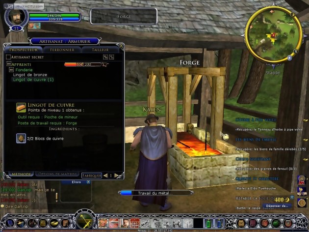 C’est bien connu, l’union fait la force et les groupes peuvent effectuer des "manœuvres" dévastatrices. Similaire à un combo surpuissant, chaque joueur doit alors choisir une couleur parmi 4 disponibles. Les combinaisons sont nombreuses et les effets peuvent être décuplés si les membres de la communauté optent le même coloris. Quant au reste, la progression de son personnage est honteusement classique par rapport aux autres MMORPG et Le Seigneur des Anneaux Online peine à se démarquer. Même remarque au niveau de l’artisanat où c’est en forgeant que l’on devient forgeron, c'est-à-dire qu’il faut par exemple filer un grand nombre d’armure en cuir pour augmenter au niveau supérieur et avoir accès à un plus large choix de création. Concrètement, 7 vocations sont accessibles et l’on peut alterner de l’une à l’autre sans problème si ce n’est celui d’abandonner son savoir-faire (repartir avec 0 point d’expérience). Chacune vocation est un cumul de trois des professions suivantes : cuisinier, fermier, forestier, érudit, bijoutier, ferronnier, prospecteur, tailleur, fabricant d’armes et menuisier. Concernant le combat, lorsque la jauge de moral de son avatar chute à 0, on est immédiatement téléporté dans un lieu en sécurité. Pas de perte d’expérience et encore moins d’équipement. Succomber à ses blessures peut ne paraître donc pas très pénalisant : on est frappé durant une dizaine de minutes d’effroi affectant nos capacités et le matériel est endommagé. C’est là qu’on touche une corde sensible : les réparations sont souvent coûteuses. Si l’on accumule les dépenses à celle des déplacements en cheval, la facture peut rapidement salée jusqu’à que l’on puisse disposer de son propre canasson à un haut niveau. Et la boucle se boucle donc : il faudra donc taper du monstre pour pouvoir récupérer quelques deniers sur le marché en échange de leur drop. Accessoirement, la salle des ventes fait un peu office d’enchère. Exit les PNJs pour s’en remettre au plus offrant des joueurs humains. Enfin, il est tout à fait possible de racheter un objet que l’on aurait malencontreusement vendu par erreur ou dont on ne voyait pas l’utilité auparavant.