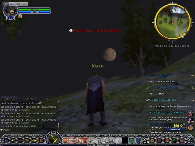 Qu’on se le dise, il n’est pourtant l’instant possible d’incarner qu’un héros d’une race de l’Alliance et bien évidemment pas les personnages principaux : Aragorn, etc. On sera toutefois amené à les rencontrer au cours de nos périnégrations et principalement lors de l’accomplissement de la quête épique. Turbine s’est laissé une marge confortable pour la suite des opérations. En effet, seule la région de l’Eriador a été modélisé. Le territoire est suffisamment vaste pour le moment mais il faudra probablement patienter un moment avant de pouvoir arpenter les terres du Rohan, du Gondor ou encore du Mordor. Du coup, l’histoire ne couvre pour l’instant que les premiers chapitres des livres, à savoir la fuite de Frodon de la Comté et les péripéties du Poney Fringant. Une intrigue suffisamment riche pour former toutefois un excellent complément aussi bien aux livres qu’aux films. On y apprend notamment quelques détails relativement croustillants pour les fans : la recherche de Frodon par les Nazgûls, comment Aragorn a-t-il su qu’il serait au Poney Fringant ou encore le rôle de ces mystérieux rôdeurs. Alors bien entendu, on est relégué à des tâches bien plus ingrates que celle du porteur de l’anneau : "tuer X monstres", "ramasser 10 fleurs de lys", "ramener un gant matelassé à un bûcheron", "récupérer des objets volés", etc. mais aussi de façon générale participer à la défense et la reconstruction des villes détruites ou encore aider la confrérie des rôdeurs. Généralement menées avec panache, certaines quêtes apportent une touche d’humour bien sympathique : jouer les courriers du cœur, amener un seau d’eau à tel endroit sans le faire tomber ou encore suivre discrètement un chien. Le farmage ou plus communément les joueurs acharnés à taper du monstre toute la journée n’y trouveront pas leur compte car le système d’expérience ne joue pas en leur faveur. Tuer un monstre, même de classe Elite ou de niveau supérieur au sien ne rapporte pas grand-chose. Il était capital que le jeu véhicule les valeurs du Seigneur des Anneaux : entres autres l’amitié, l’esprit d’équipe et le partage. A ce titre, le système de quêtes est logiquement au centre du jeu. Vraiment nombreuses, il est possible d’en accomplir beaucoup en solo mais composer un groupe (jusqu’à 6 personnes) est la manière la plus efficace pour y parvenir.