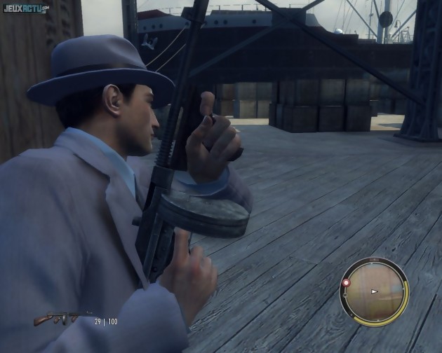 Après les aventures de Tommy Angelo dans la ville fictive de Lost Heaven, voici donc venir les pérégrinations de Vito Scaletta dans la tout aussi imaginaire cité d'Empire Bay. Nous sommes dans les années 40, et grâce aux relations de son ami d'enfance Joe Barbaro, notre homme passe du statut de soldat en permission à celui d'ex-combattant, prétendument trop blessé pour pouvoir retourner au combat. Les deux compères ne vont pourtant pas manquer d'émotions fortes puisque les nombreuses activités illégales réalisables en environnement urbain les attirent nettement plus qu'un travail honnête et mal payé. Au fil du temps et des missions, ces petites frappes vont donc finir par intégrer la mafia locale. Pour autant, aucun des deux ne deviendra parrain à la place du parrain. Le scénario privilégie les situations complexes, voire inextricables, et ne tombe jamais dans le syndrome du super-héros à qui tout réussit. Certaines scènes évoquent même une véritable descente aux enfers, puisque le jeu ne s'embarrasse jamais de politiquement correct. Cela donne parfois le meilleur, à l'image de ces vannes cruelles sur les différentes communautés raciales, qui n'auraient pas dépareillé dans le Gran Torino de Clint Eastwood. Ou le pire, comme ce vomitif chapitre 7 où scatologie, machisme et morbidité travaillent de concert pour atteindre des sommets de vulgarité. A l'exception de la tenue des filles de joie, plus suggestive qu'explicite, Mafia II assume donc pleinement son statut 18+. D'ailleurs, que les amateurs de poitrines dénudées soient immédiatement rassurés : la possibilité de ramasser des magazines Playboy disséminés ici et là dans le décor les comblera d'aise. Chacun des cinquante numéros cachés donne accès à l'image (parfois un peu trop retouchée) d'une Playmate d'époque, sur laquelle on ne manquera pas de zoomer à loisir. Pour l'anecdote, les collectionneurs dans l'âme pourront également partir à la chasse aux affiches "Wanted", présentant des portraits de vrai-faux criminels et consultables par la suite dans le menu bonus.